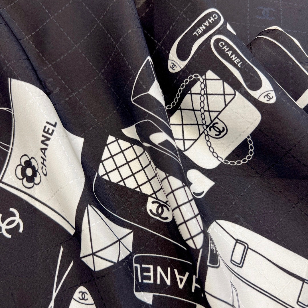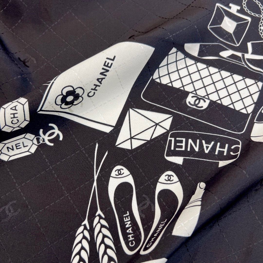 CC Square Scarf 90 CM In Black Mix White Silk Twill 301845