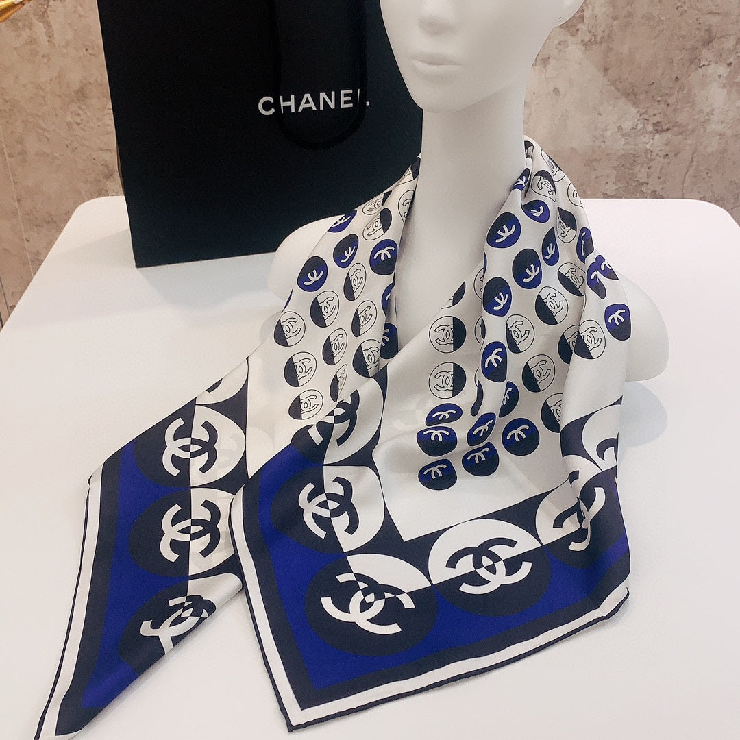 CC Square Scarf 90 CM In Blue Silk Twill 306566