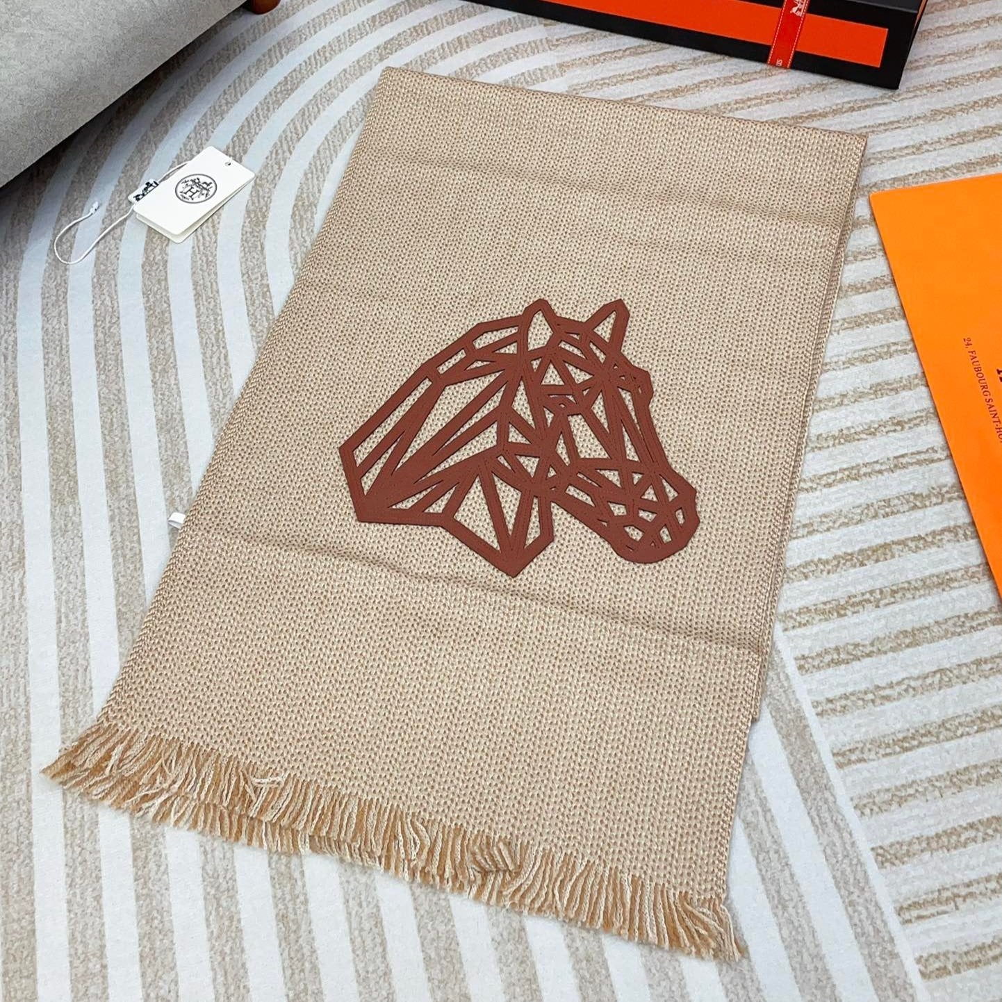 Geometric Scarf 151 CM IN Beige White Cashmere
