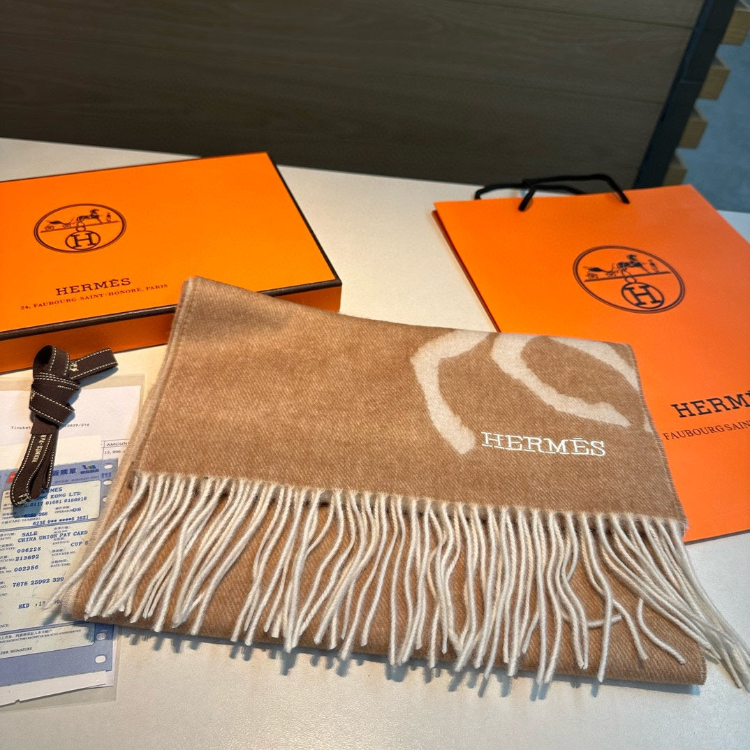 Casaque Entrelacs Equestres Scarf 195 CM Orange Mix Light Brown Cashmere