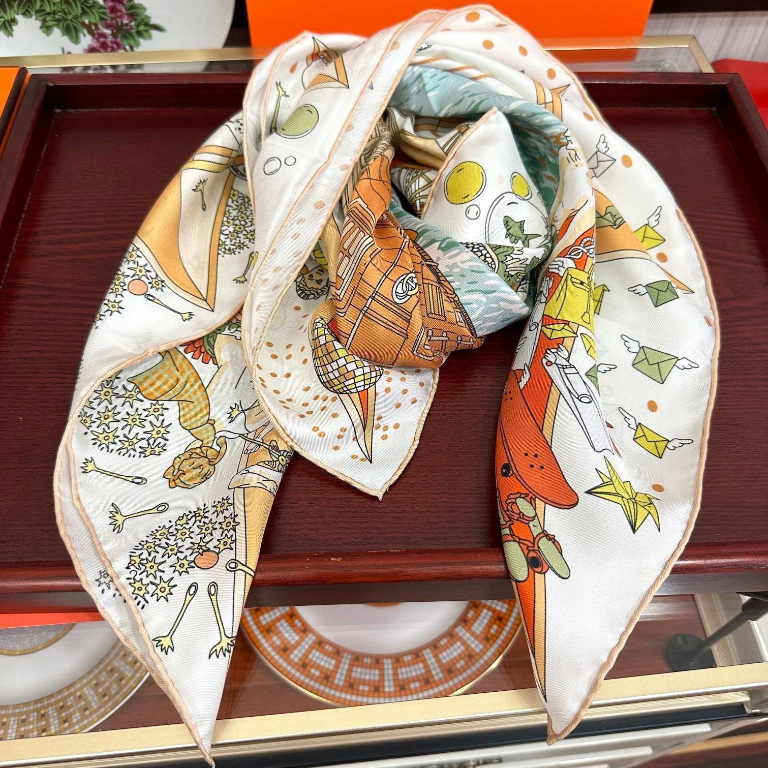 Retourala Nature Hermes Scarf 140 CM White Pink Colorful Silk