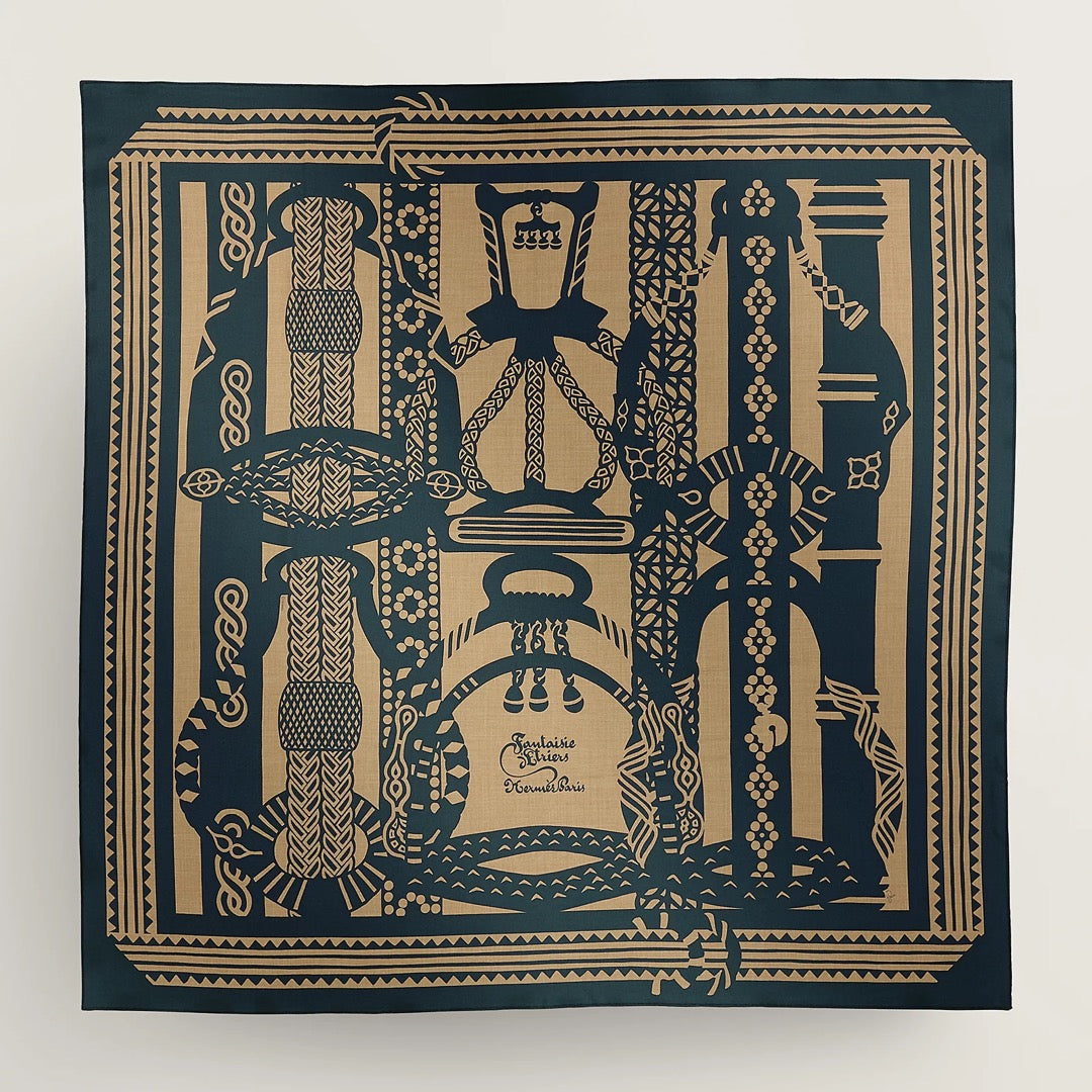 Square Scarf 140 CM Charcoal Blue Pattern Cashmere And Silk