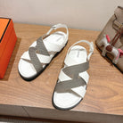HM 25 Heracles Sandal White Calfskin Grey Canvas