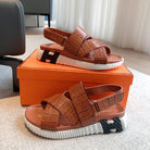 HM ELECTRIC CROCODILE MOTIF SANDAL CIDER CALFSKIN