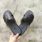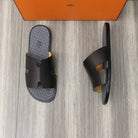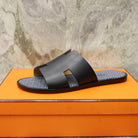 HM IZMIR SANDAL BLACK WITH WHITE MOTIF CALFSKIN
