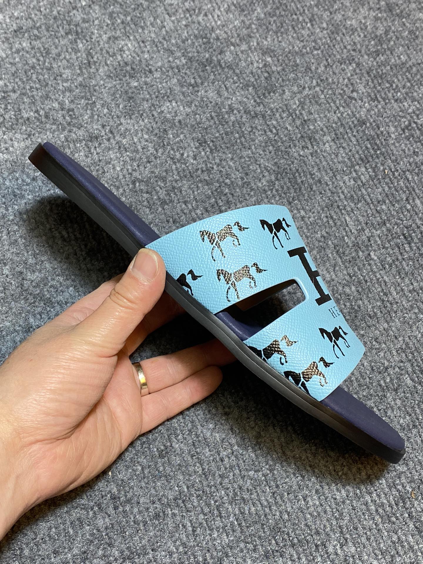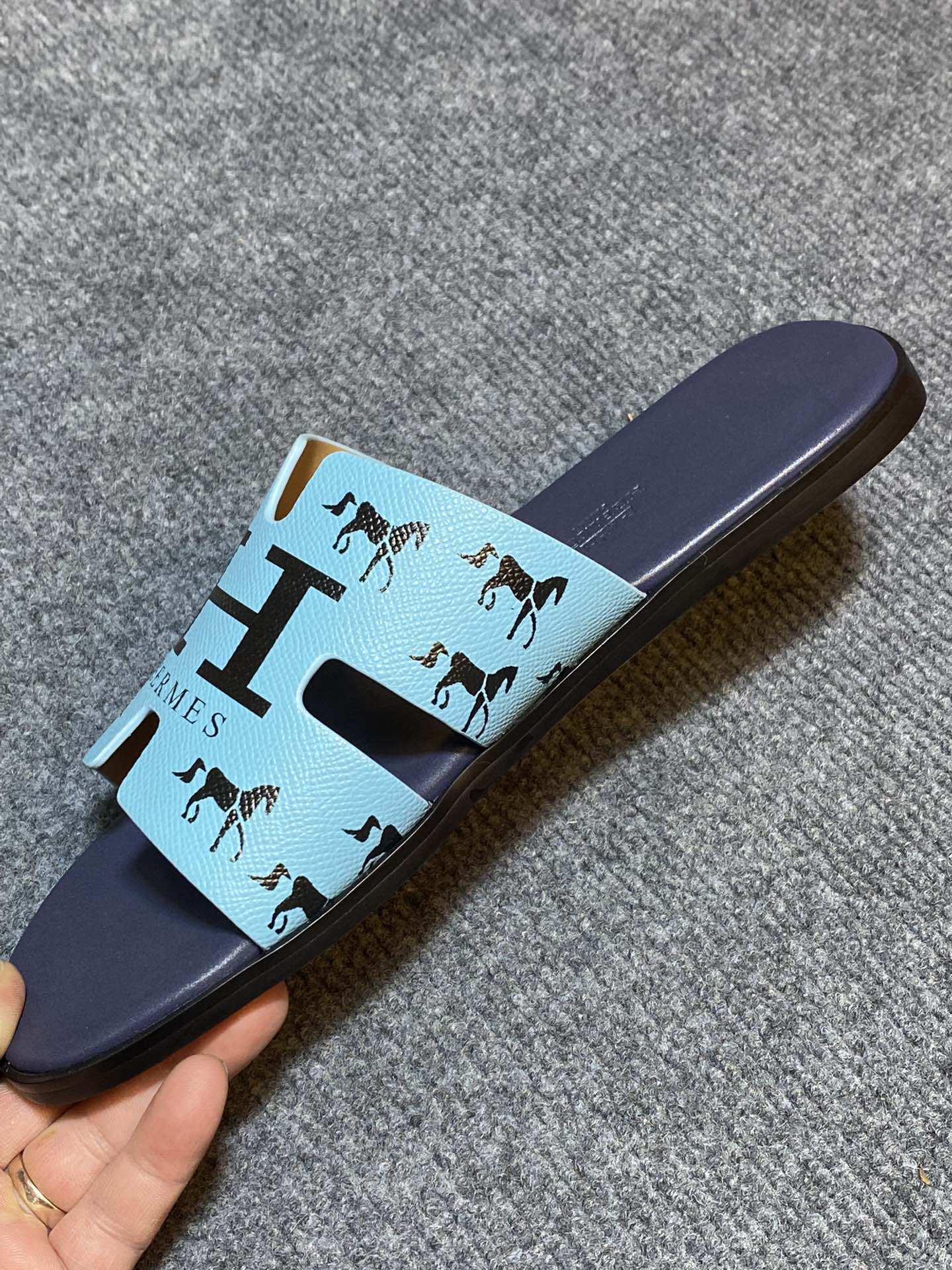 HM IZMIR SANDAL INDIGO AND SKY CALFSKIN WITH ICON