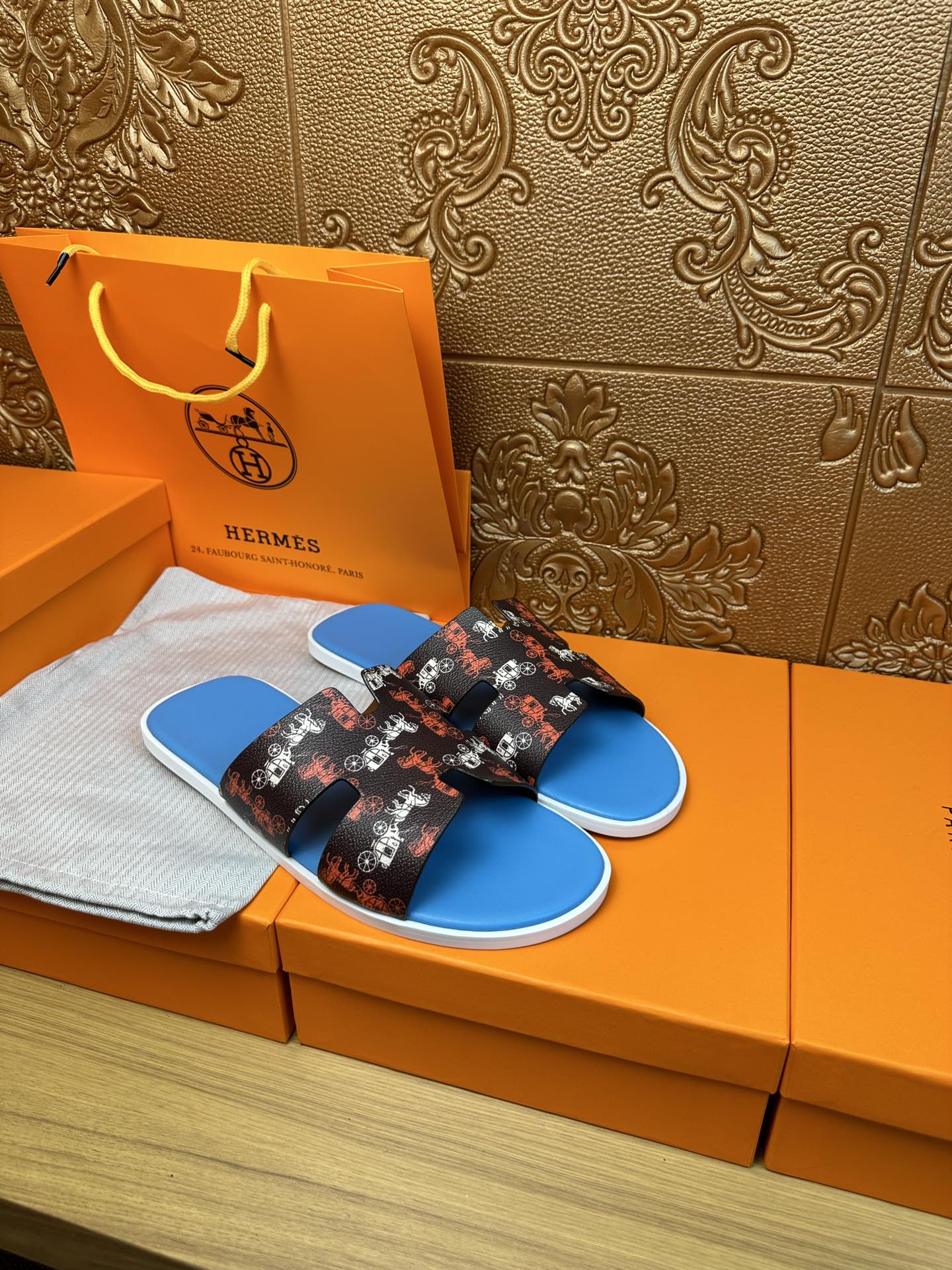 HM IZMIR SANDAL LAPIS AND BLACK CALFSKIN WITH HORSE MOTIF