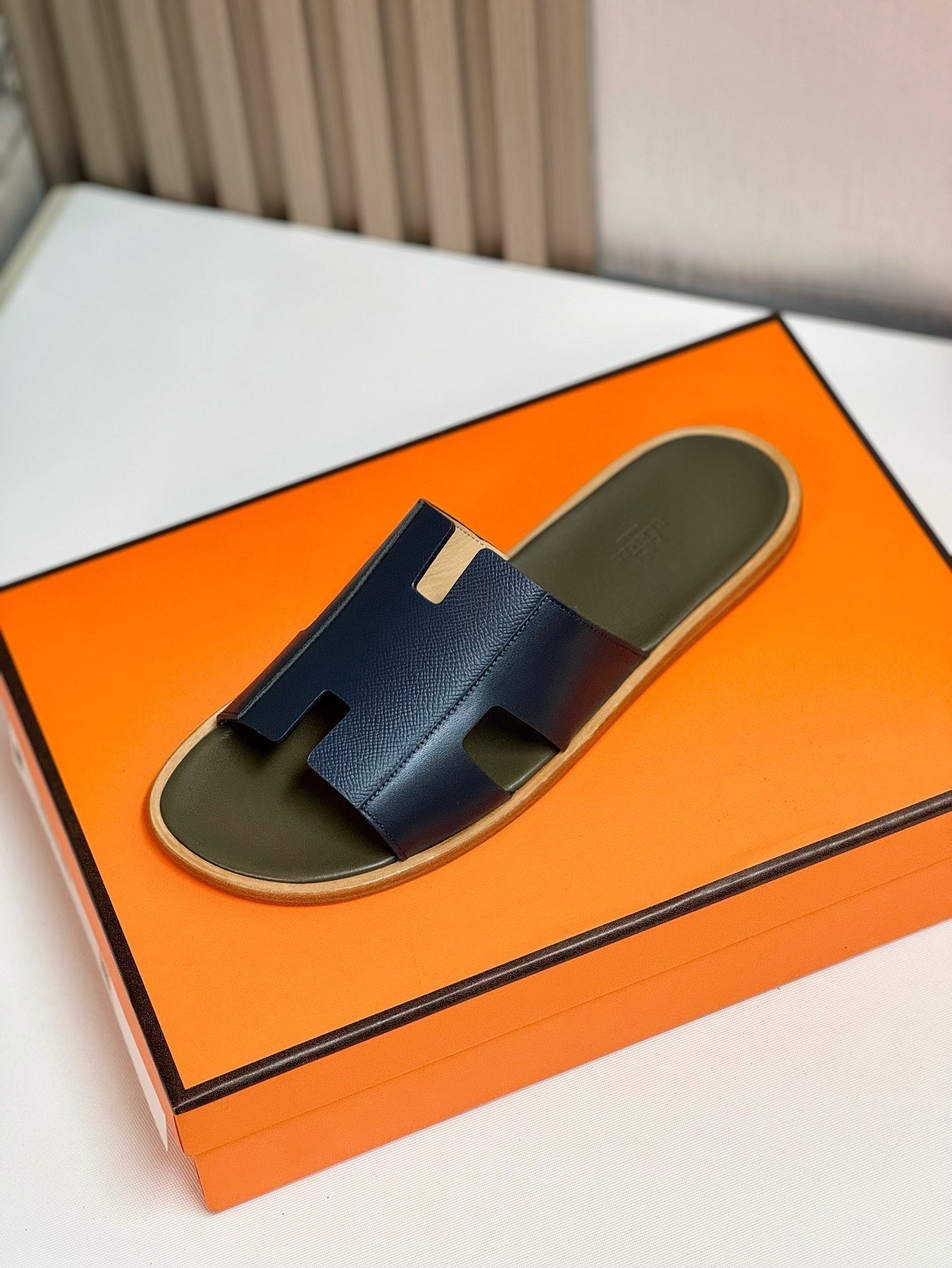 IZMIR SANDAL MOSS MIX BRIGHT NAVY LAMBSKIN