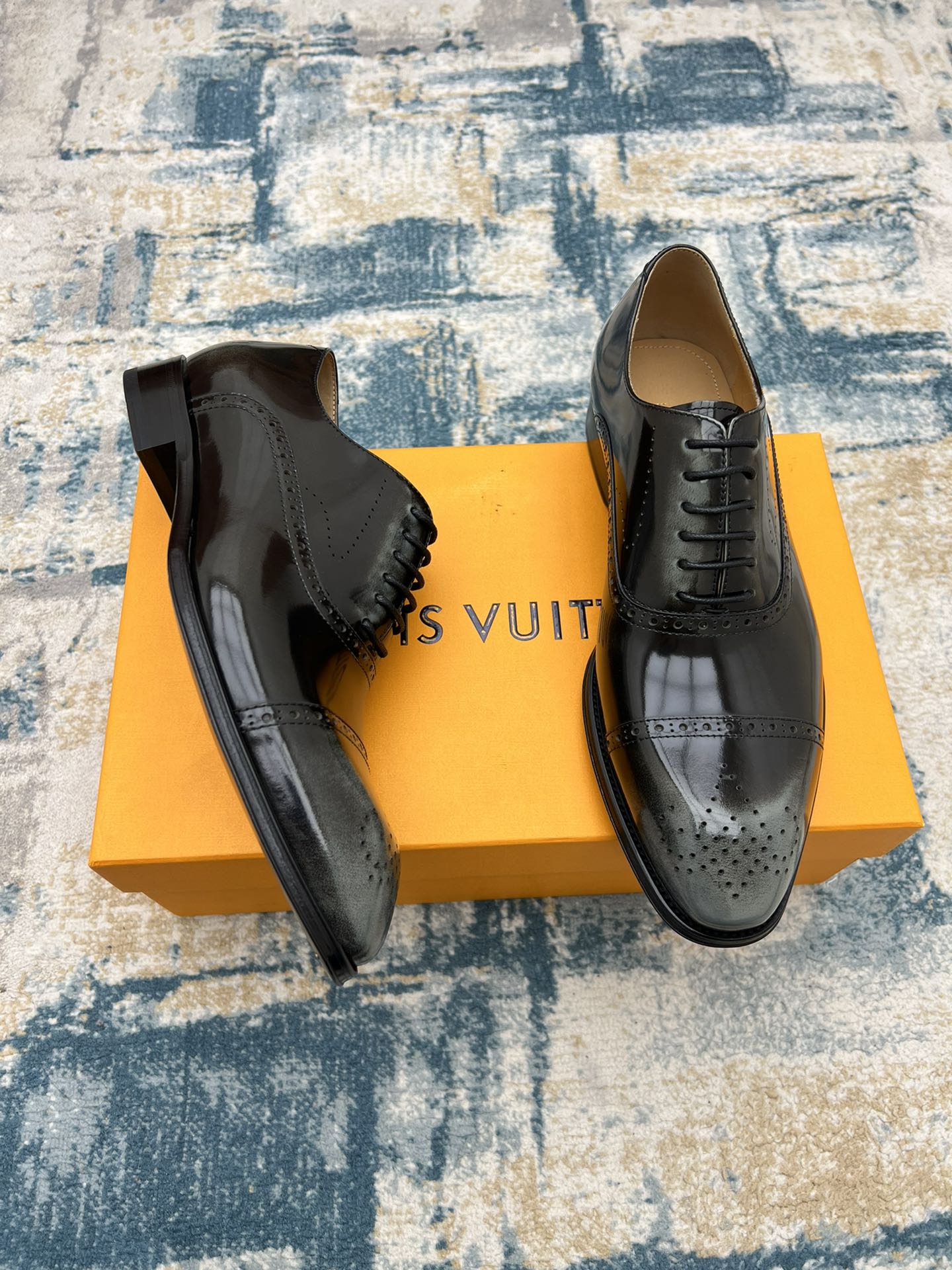 LV LACE-UP IN BLACK MIX GREY GLOSSY CALFSKIN