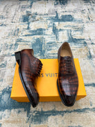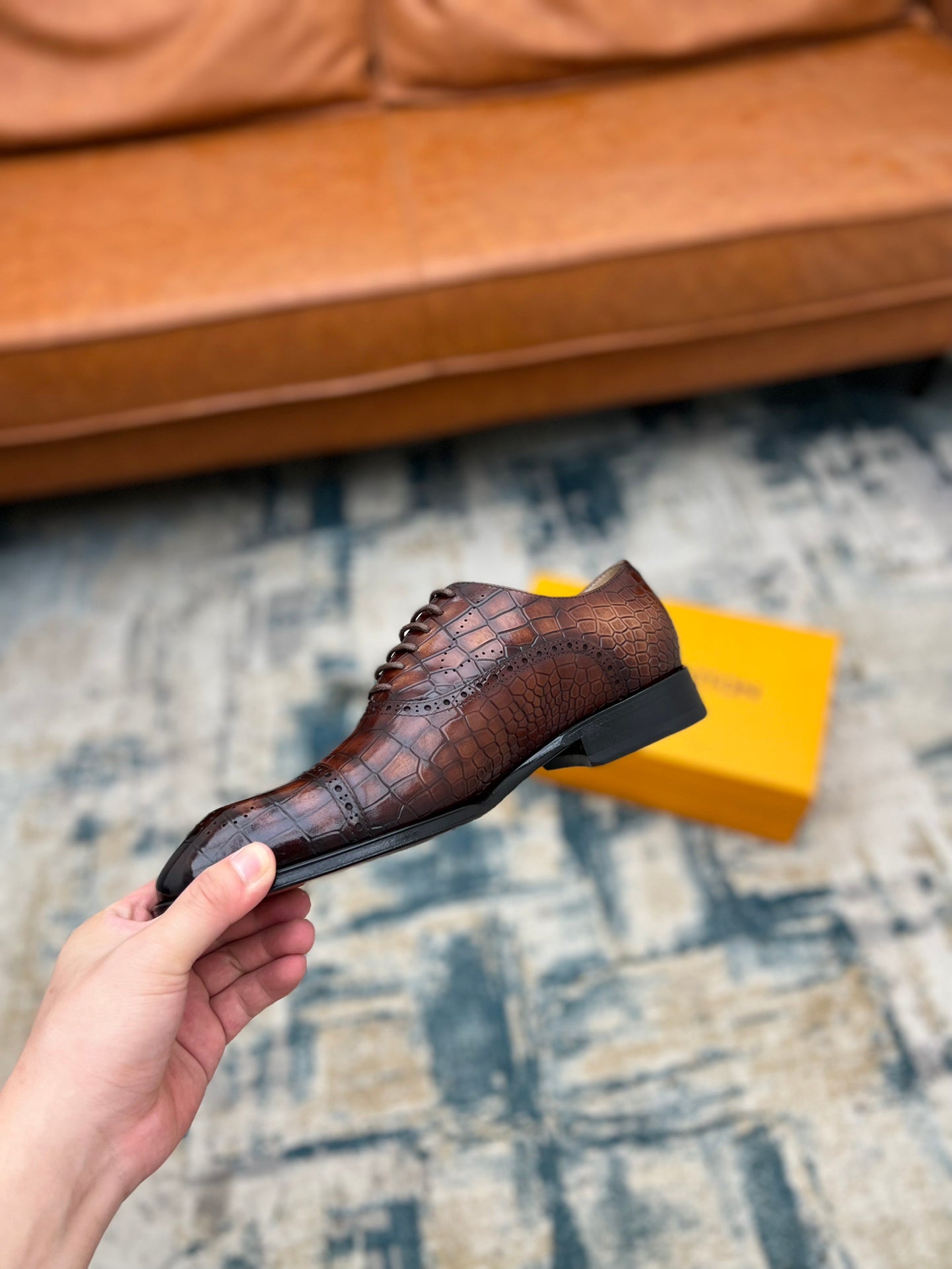 LV LACE-UP SHOES IN BROWN CROCODILE CALFSKIN