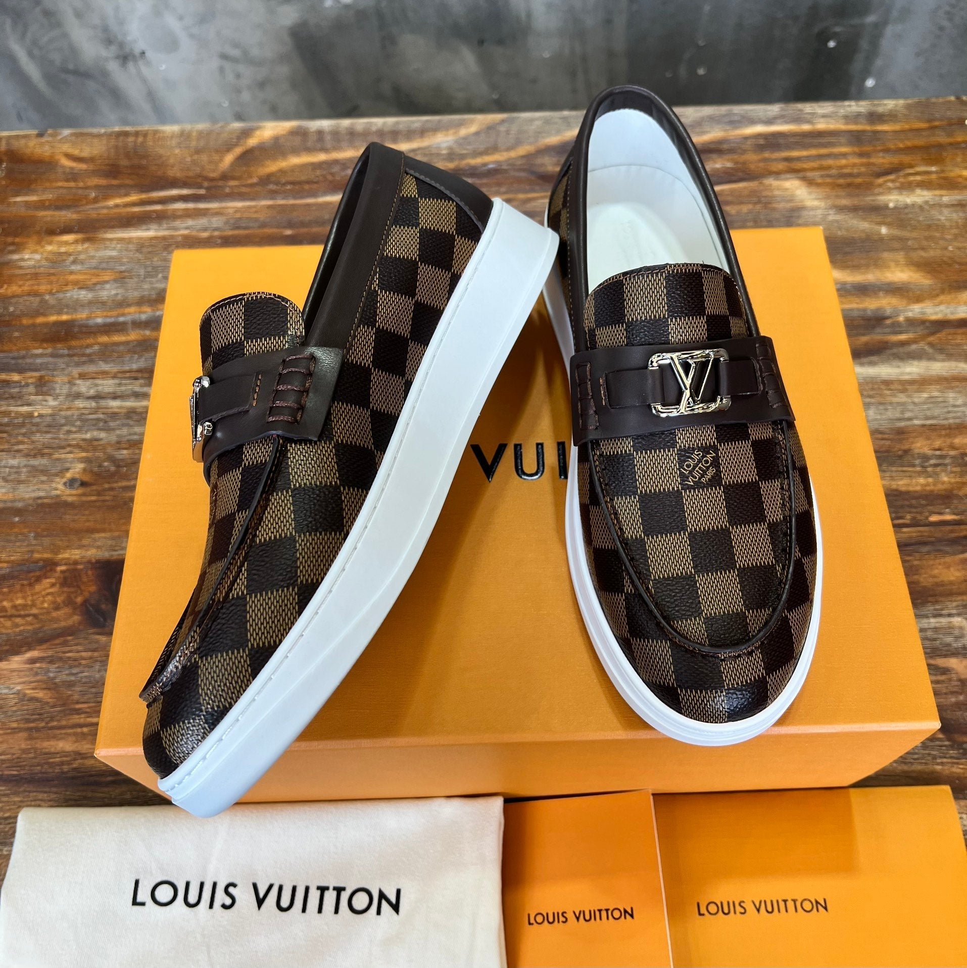 LV LOAFER CHOCOLATE BROWN DAMIER CANVAS AND CALFSKIN