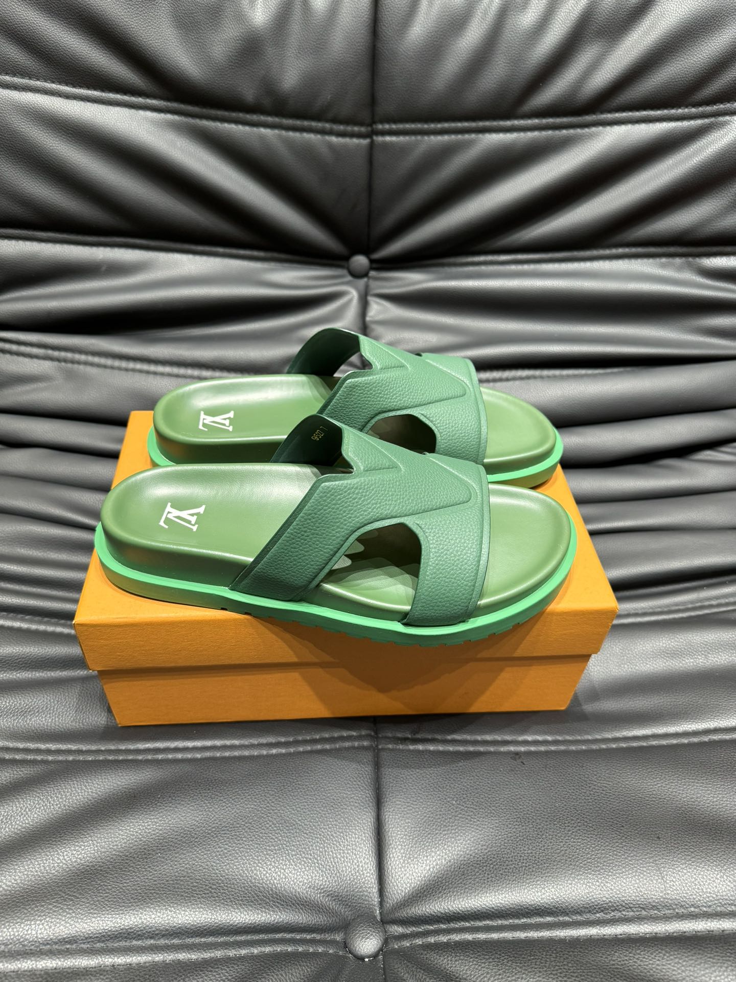 LV OASIS MULE IN SEA GREEN CALFSKIN