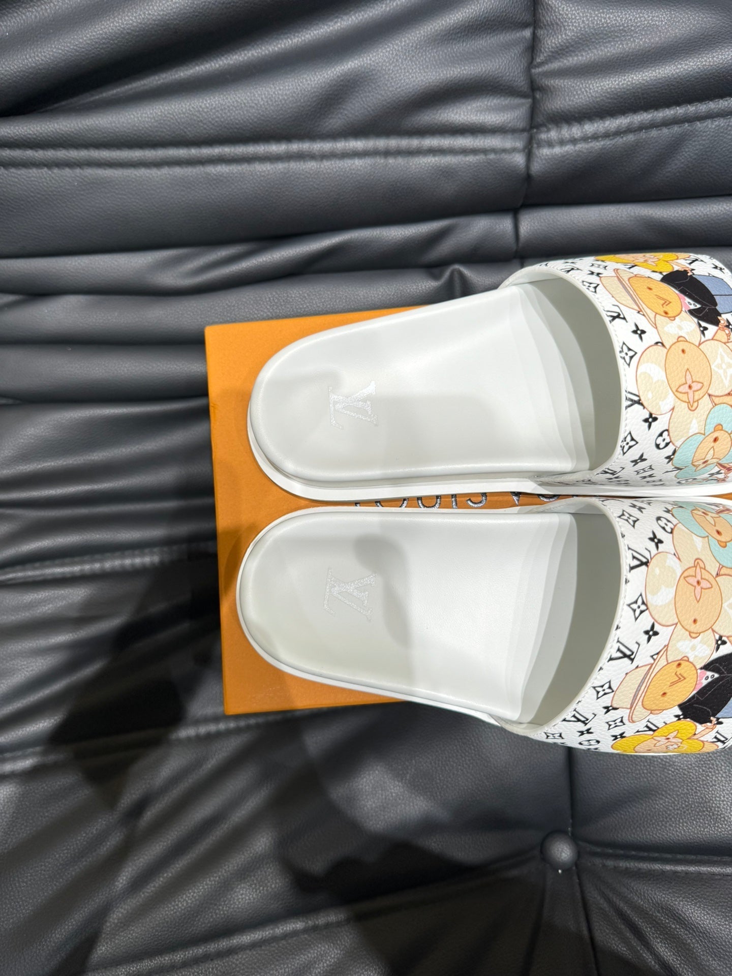 LV SLIPPERS IN WHITE MONOGRAM CALFSKIN