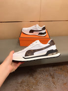 LV SNEAKERS IN GREY MIX BROWN CALFSKIN AND BRANDED PRINTED FABRIC