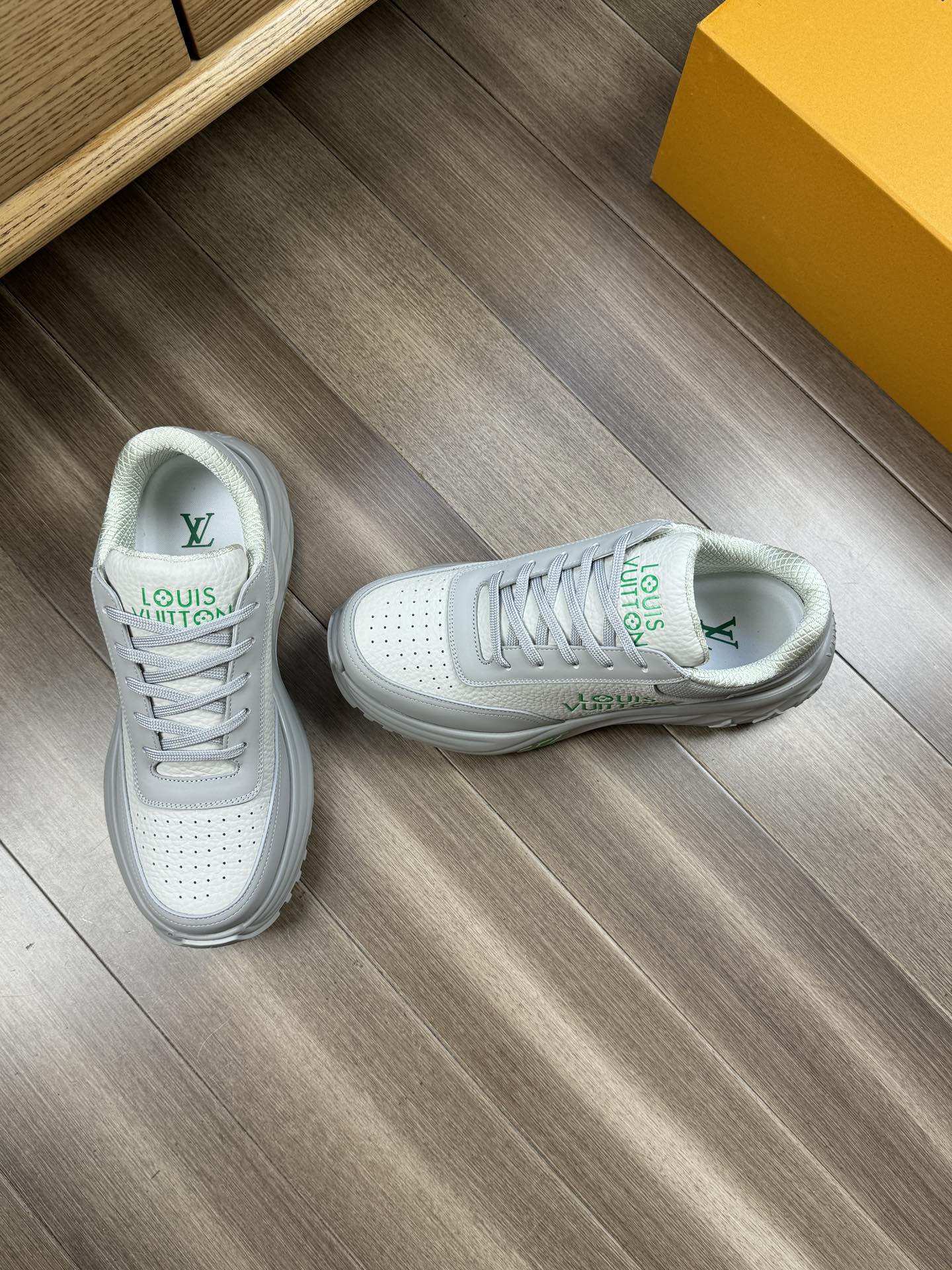LV SPORT SNEAKER IN WHITE MIX GREY CALFSKIN WITH GREEN LOGO