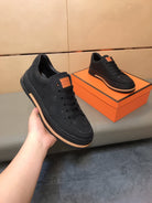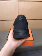 LV TRAINER IN EMBOSSED BLACK SUEDE