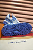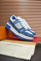 LV TRAINER SNEAKER BLUE MONOGRAM DENIM AND WHITE CALFSKIN