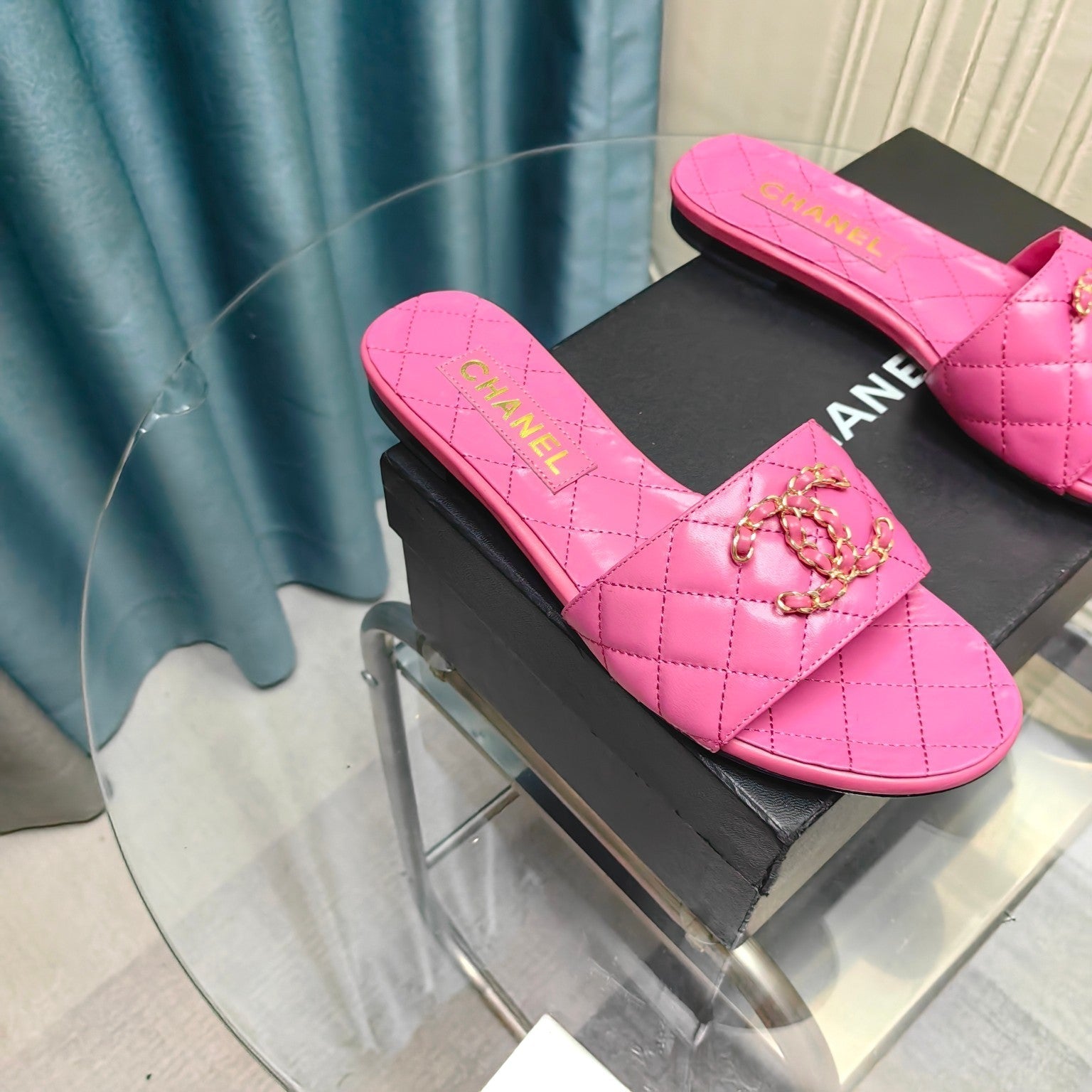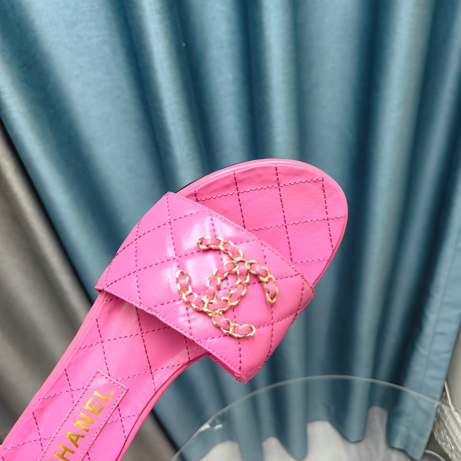 mule sandal quilted dark pink calfskin