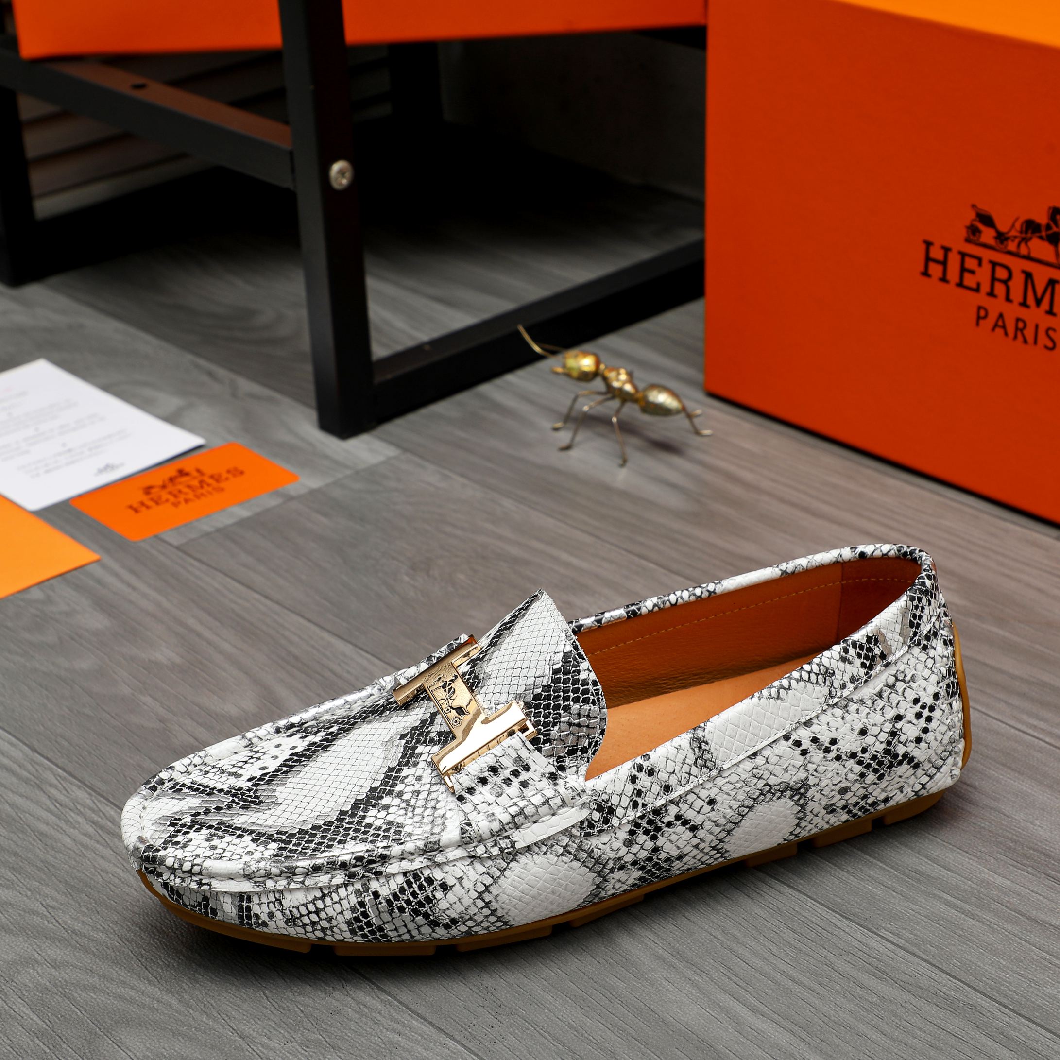 HM SNAKESKIN MOTIF LOAFER WHITE AND BLACK CALFSKIN