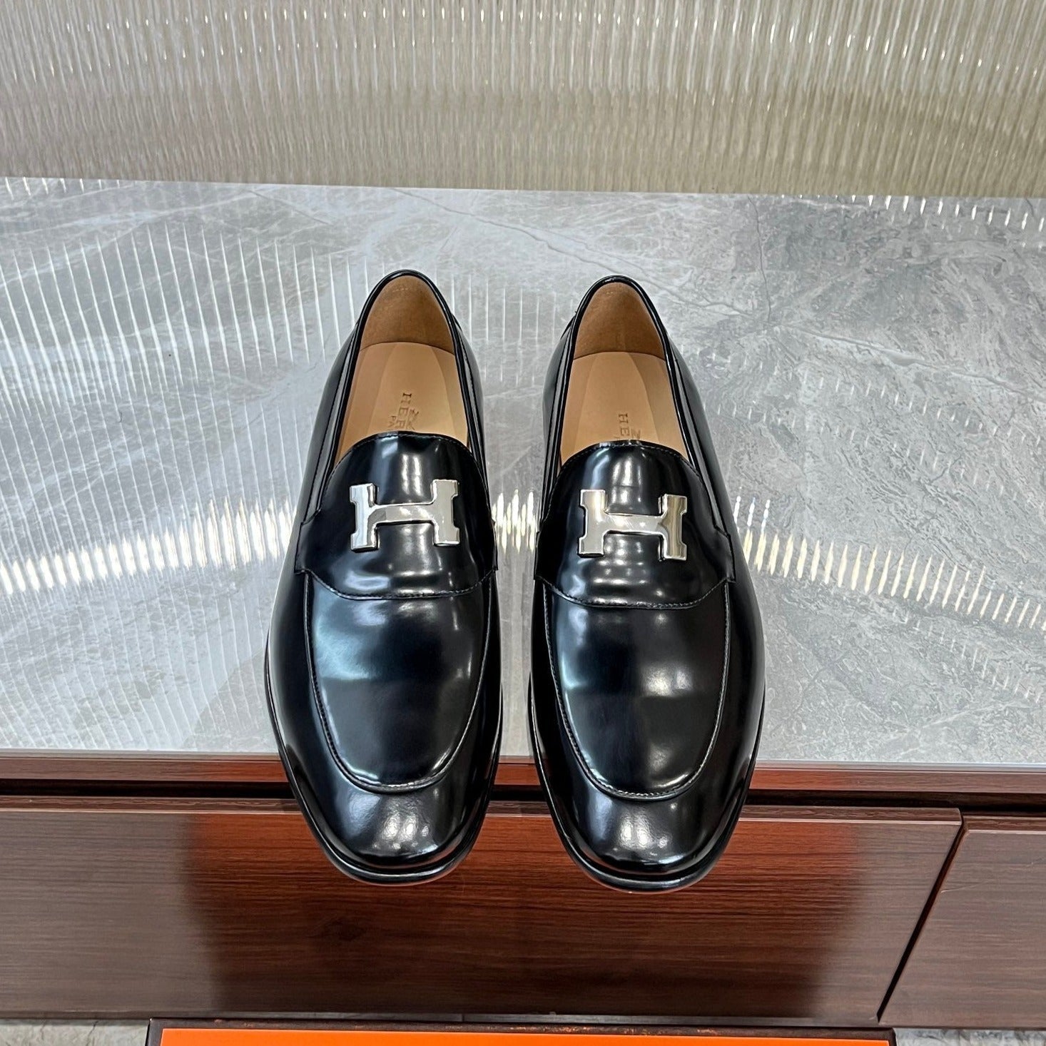 HM H-BUCKLE LOAFER GLOSSY BLACK CALFSKIN