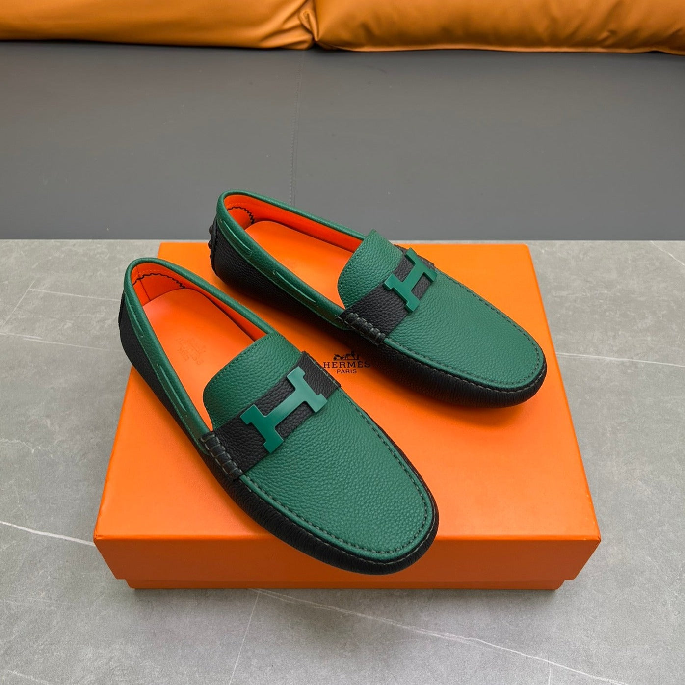 HM H-LOGO LOAFER PINE GREEN AND BLACK CALFSKIN