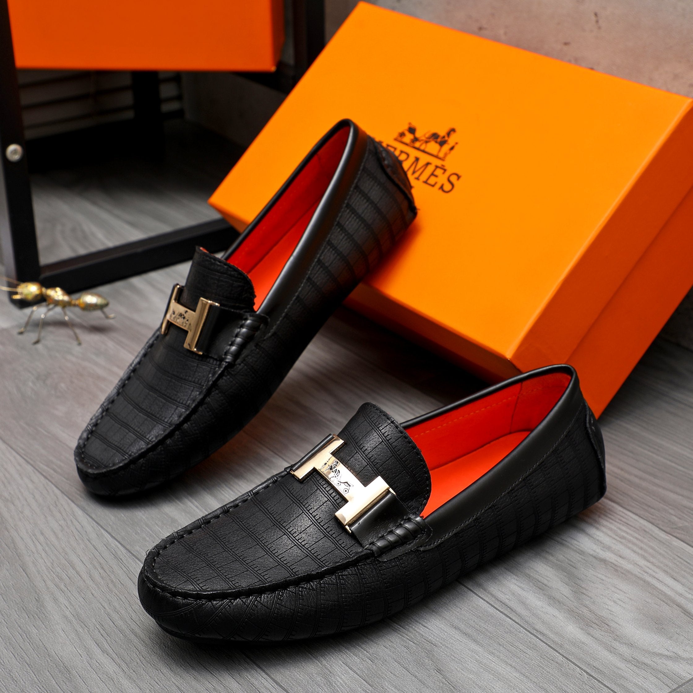 HM H-BUCKLE LOAFER BLACK EMBOSSED CALFSKIN
