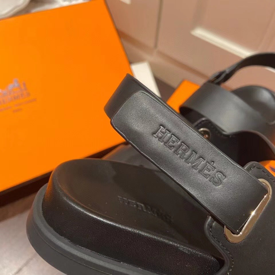 HM HENRIO SANDAL BLACK CALFSKIN