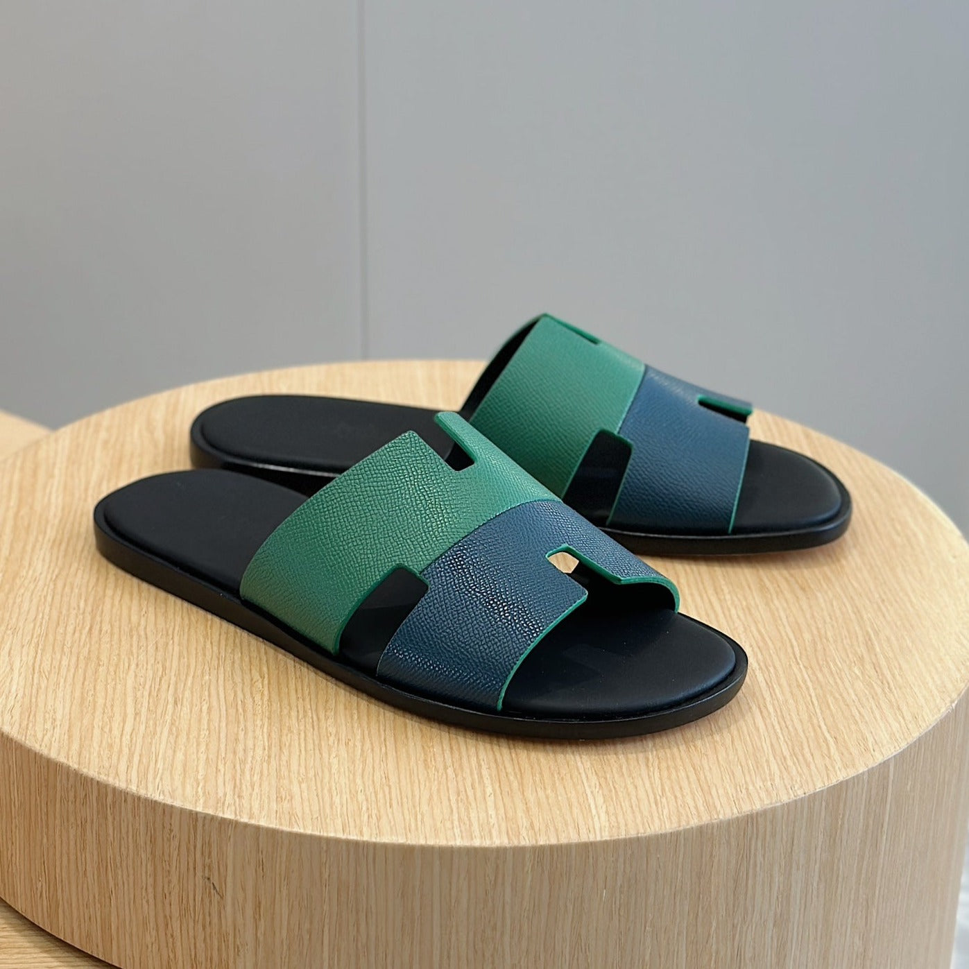 HM IZMIR SANDAL NAVY AND GRAY CALFSKIN