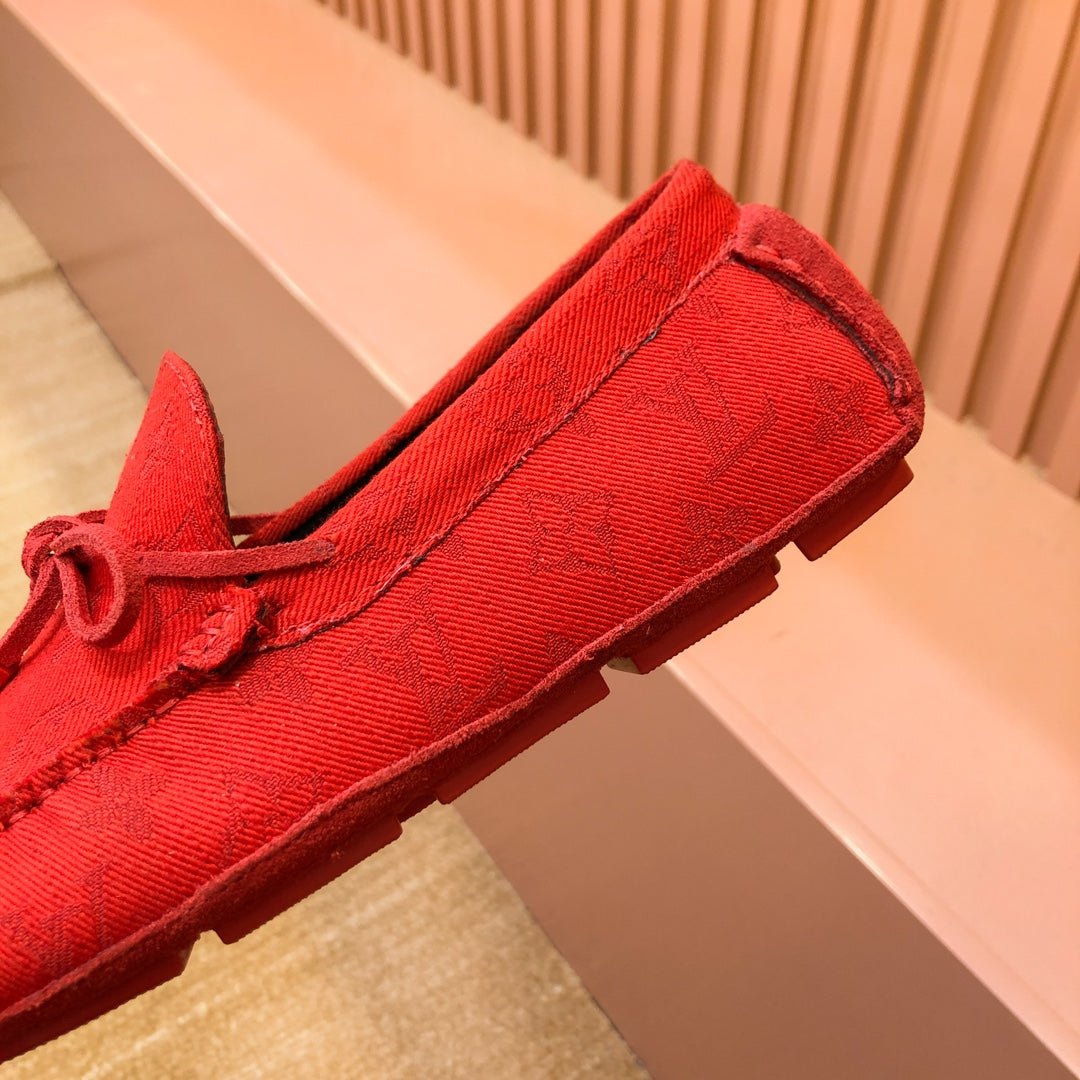 LV LOAFER IN CRIMSON RED MONOGRAM DENIM WITH BOW