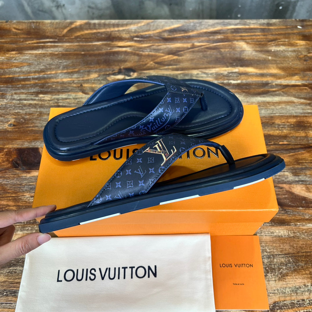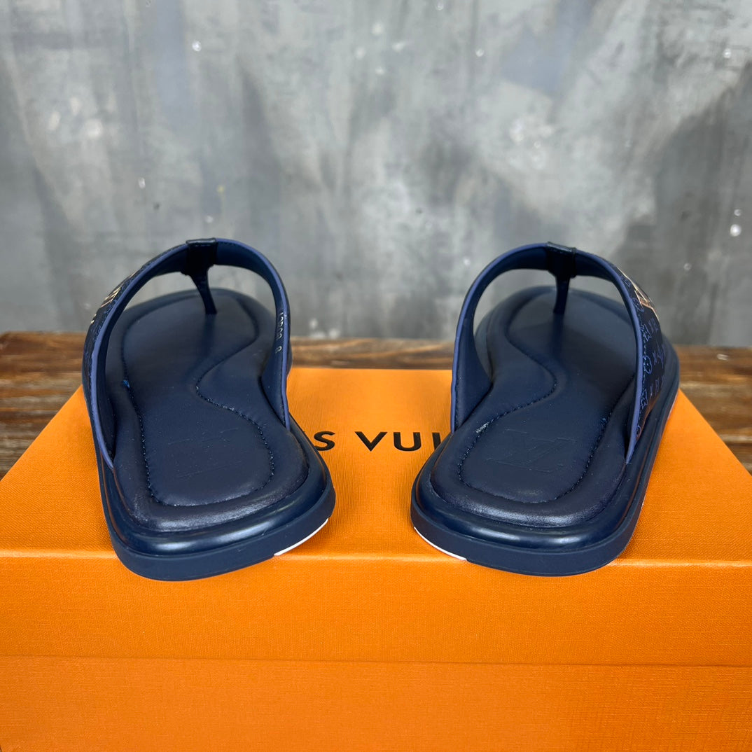 LV THONG SLIPPER IN NAVY BLUE MONOGRAM CALFSKIN