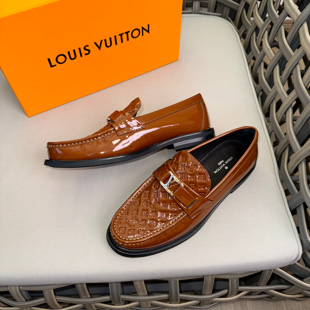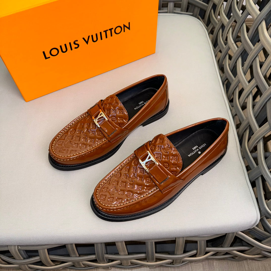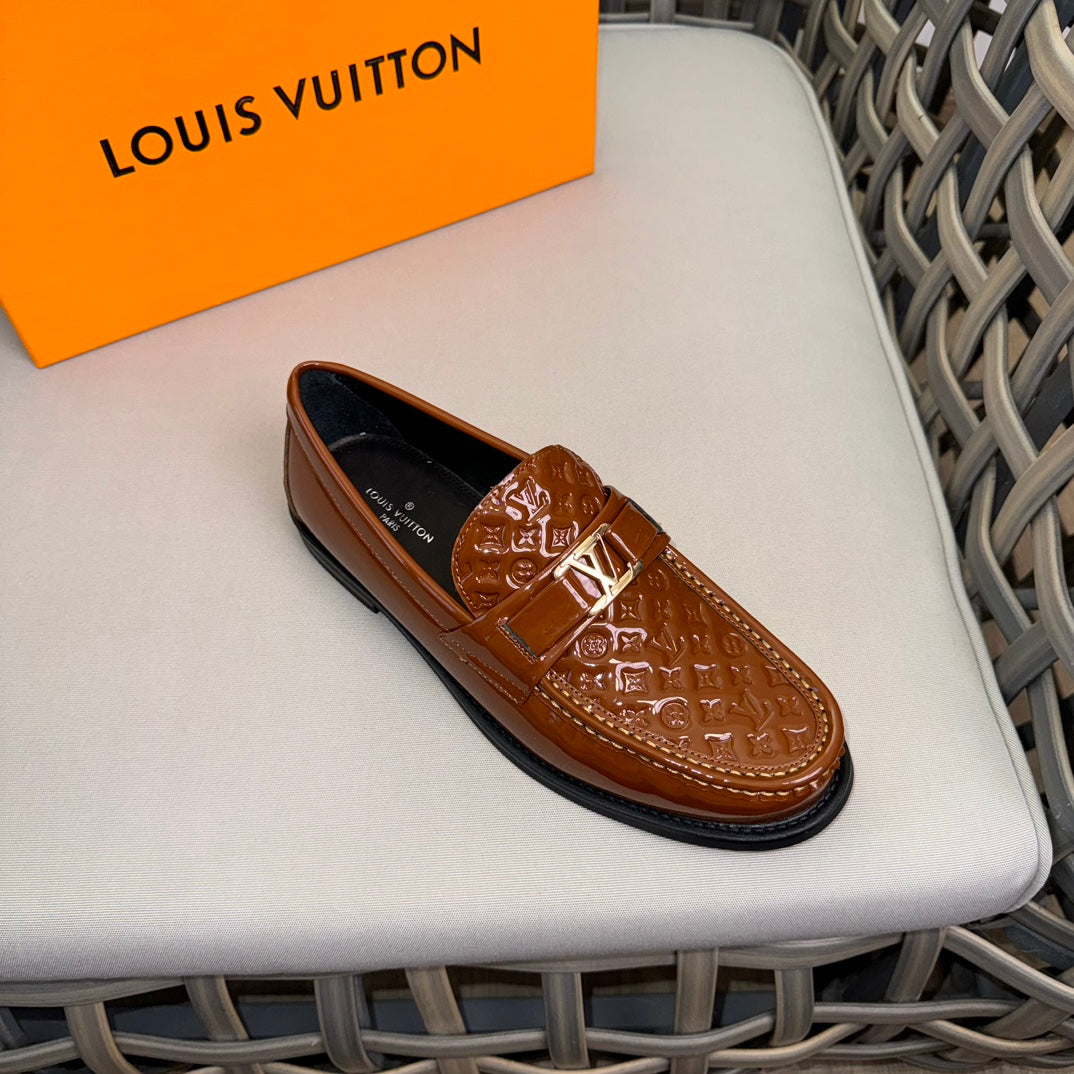 LV MAJOR LOAFERS IN CHOCOLATE BROWN EMBOSSED CALFSKIN
