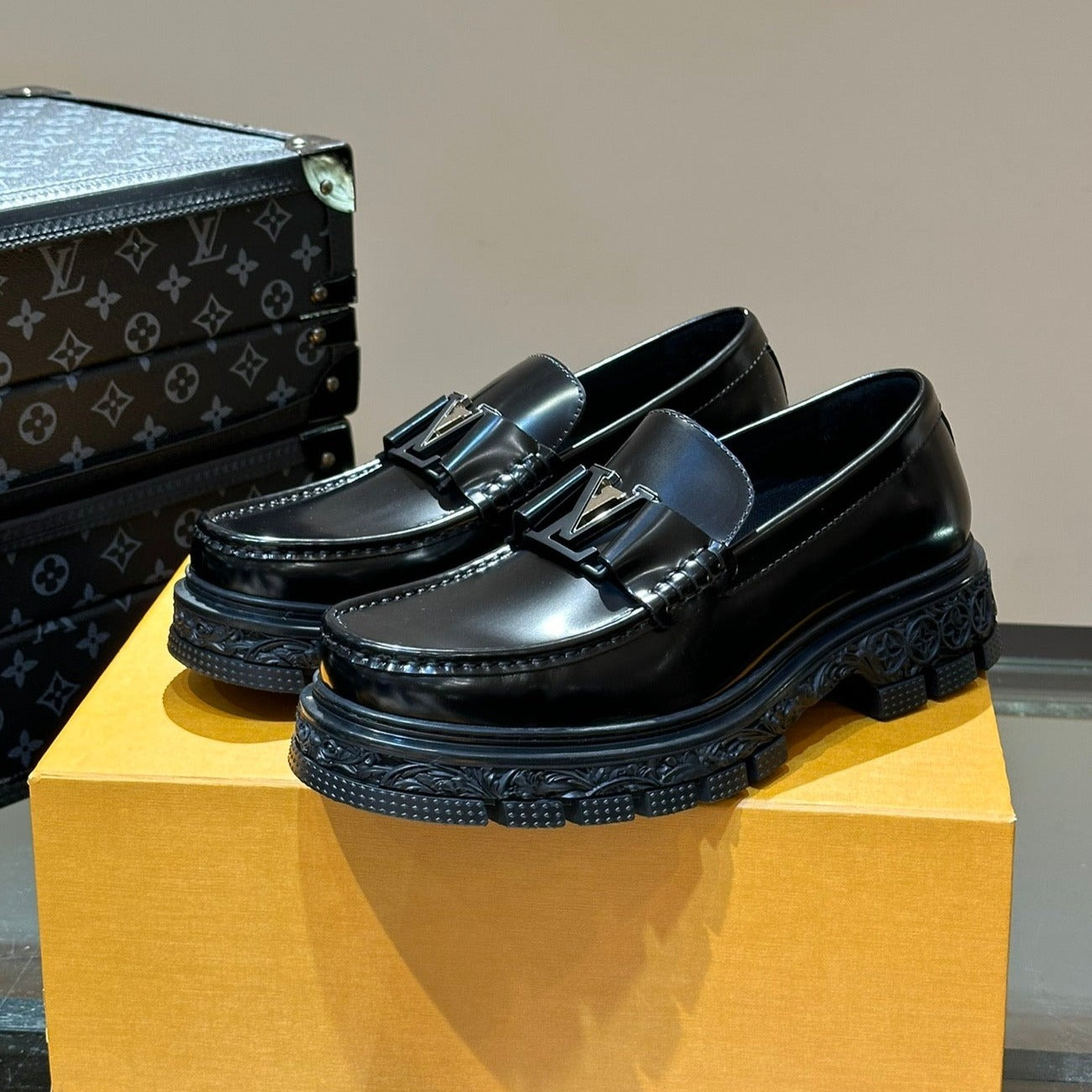 LV MAJOR LOAFER IN BLACK WITH PATERN CALFSKIN