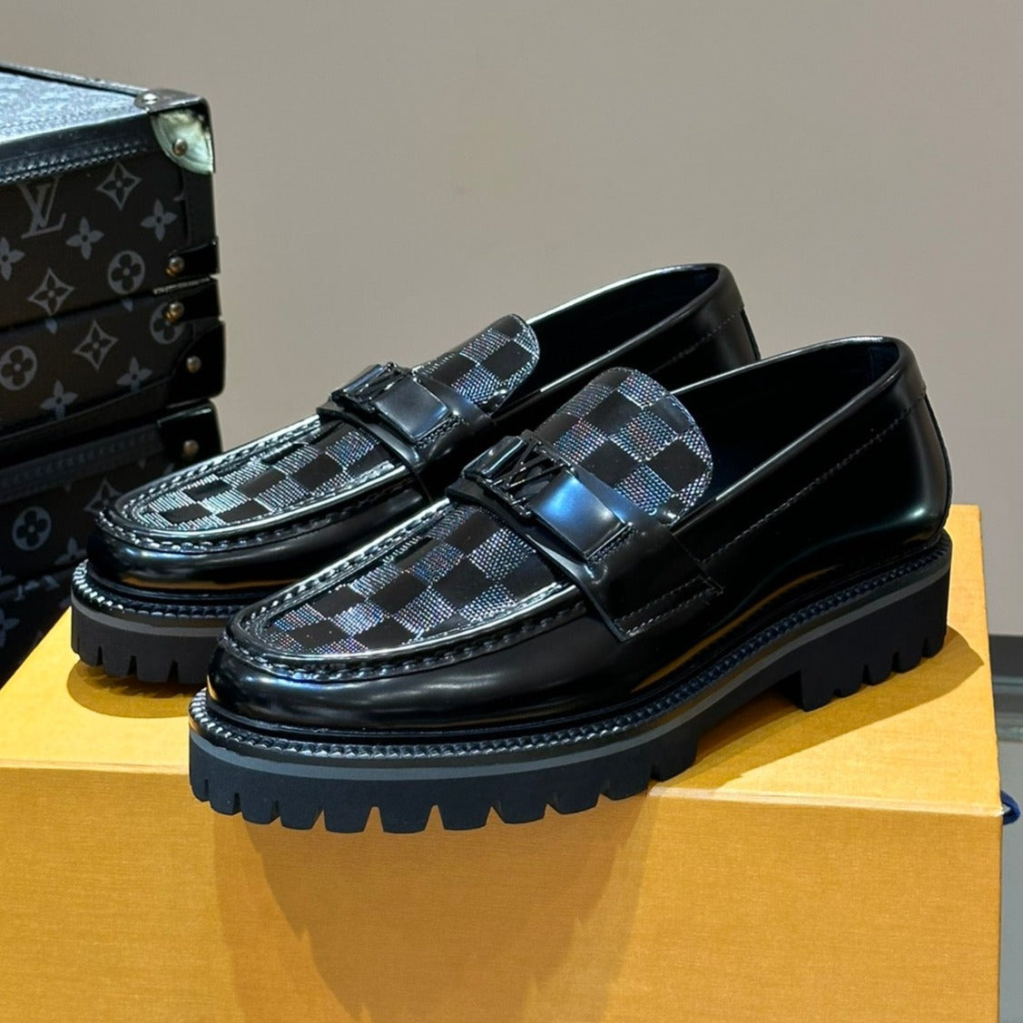 LV MAJOR LOAFERS IN GREY MIX BLACK DAMIER CALFSKIN
