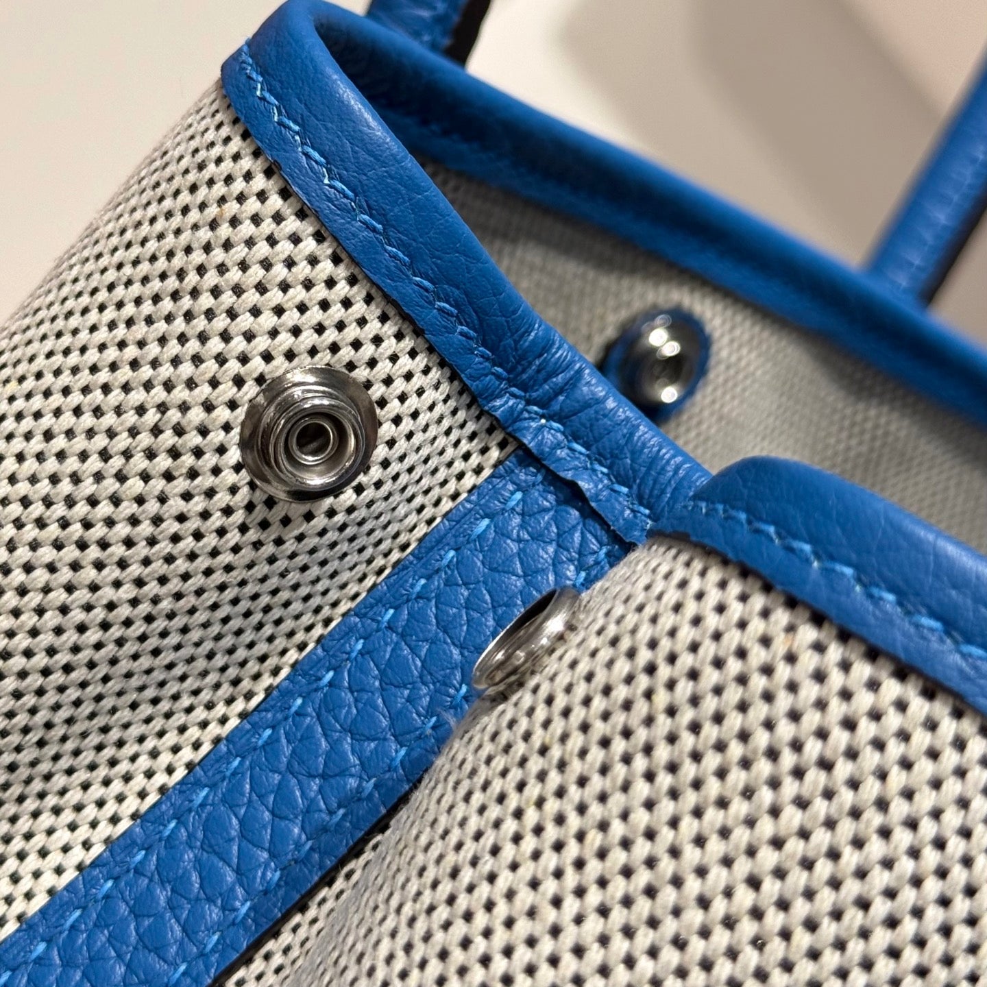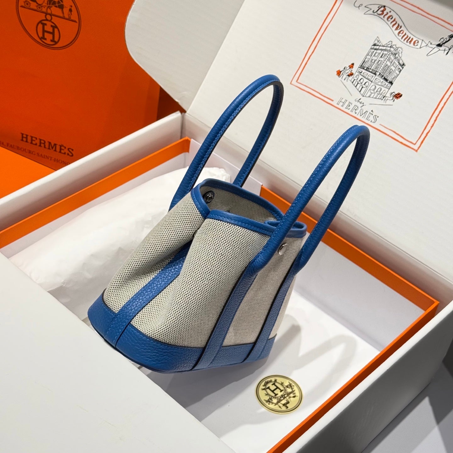 HM Garden Party Mini 23cm Bag Blue Togo Cream Canvas