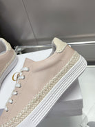 CHLOÉ TELMA LACE-UP SNEAKER IN DESERT SAND LAMBSKIN AND RAFFIA