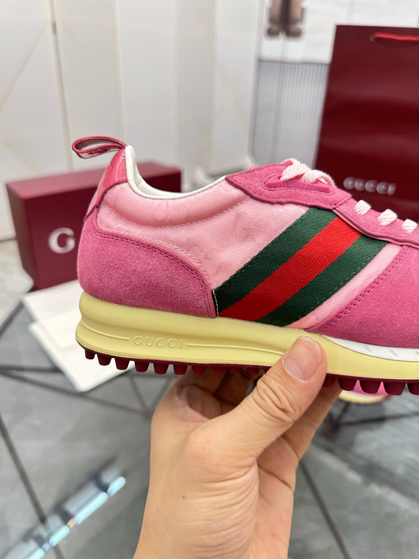 GG Men's Re-Motion Sneaker Pink Suede 733558