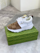 GG Men's Sneaker White Brown Calfskin Canvas 528940
