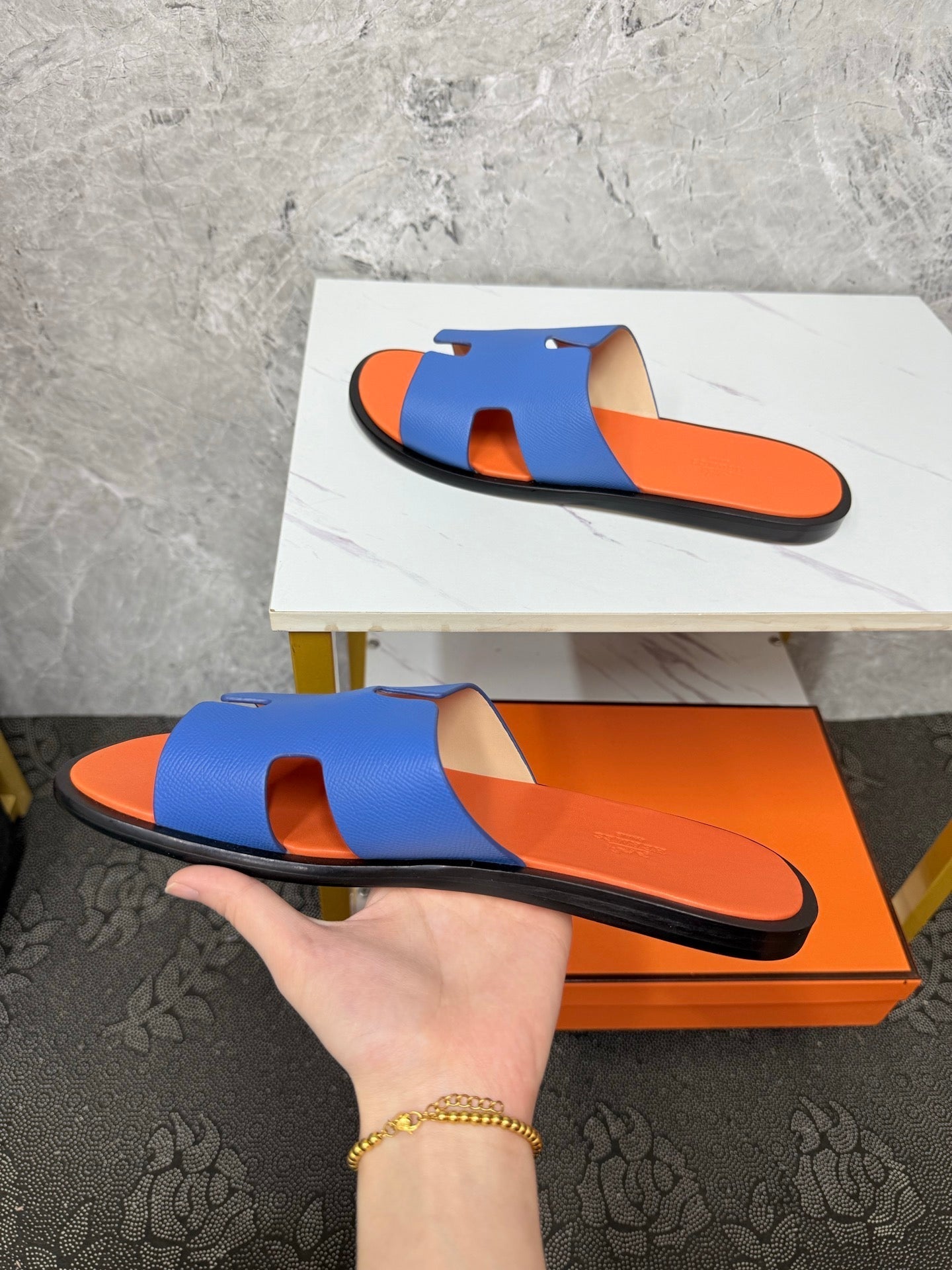 HM Men's Izmir Slide Blue Orange Cowhide 619451