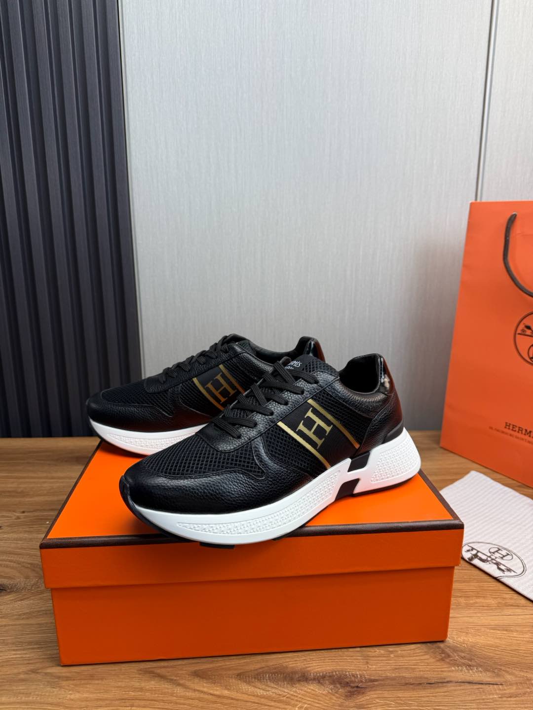 HM Men's Sneaker Black Mesh Cowhide 519225