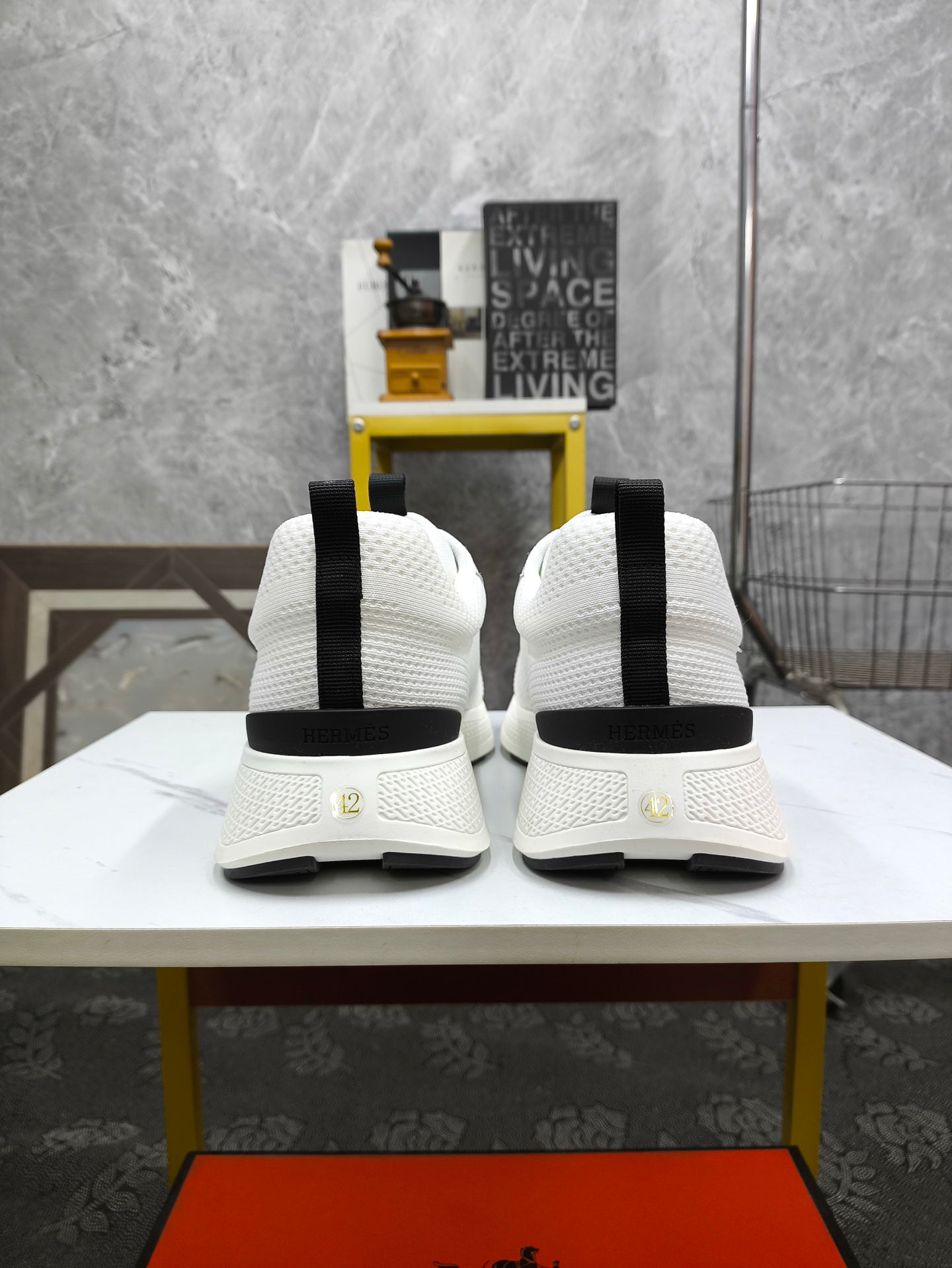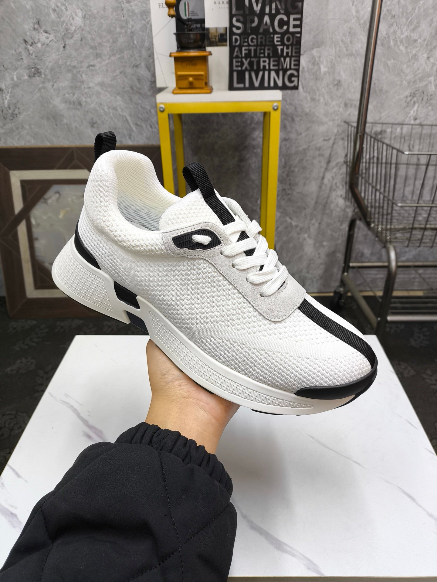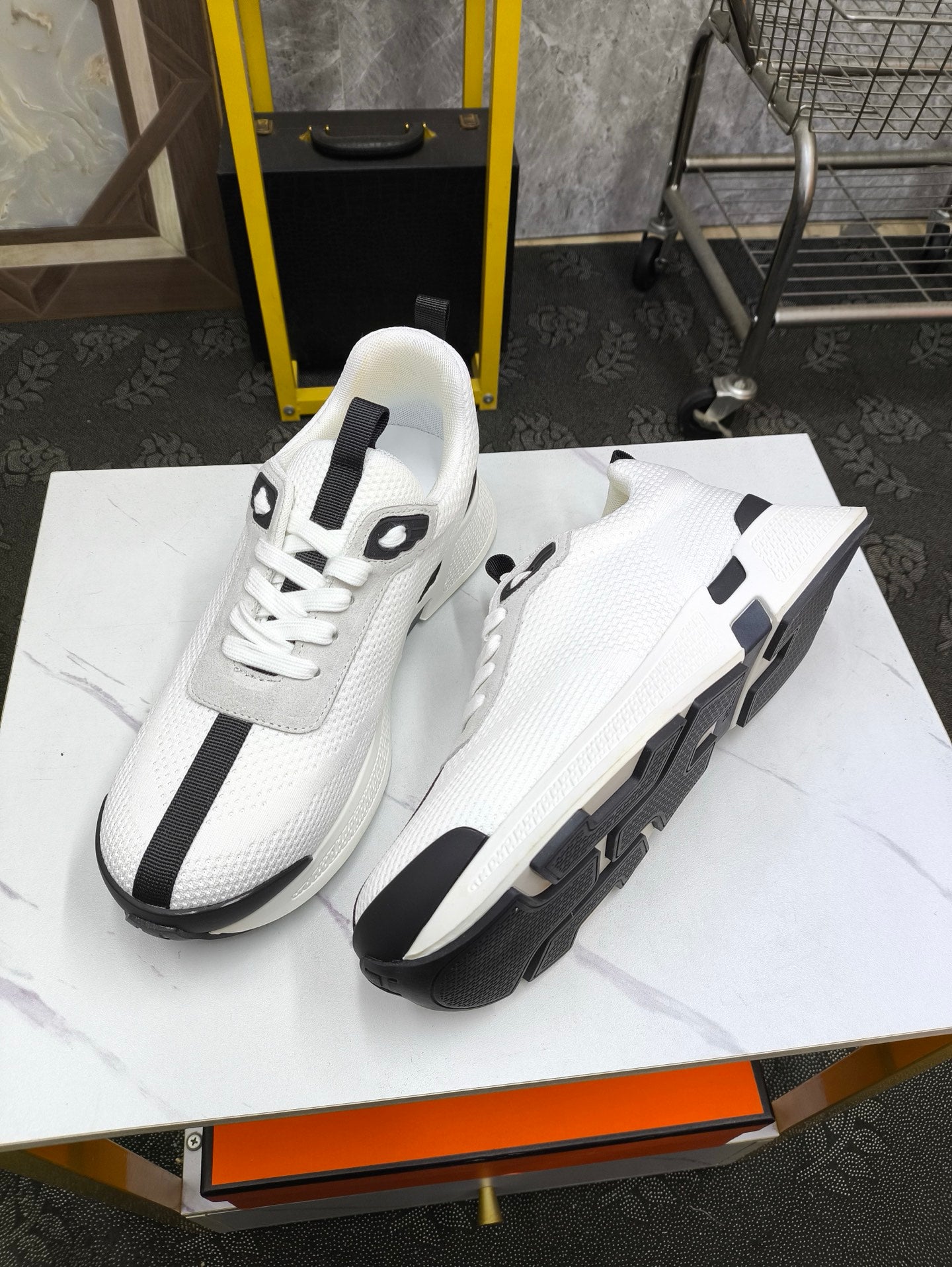 HM Men's Sneaker White Black Mesh Lambskin 543944