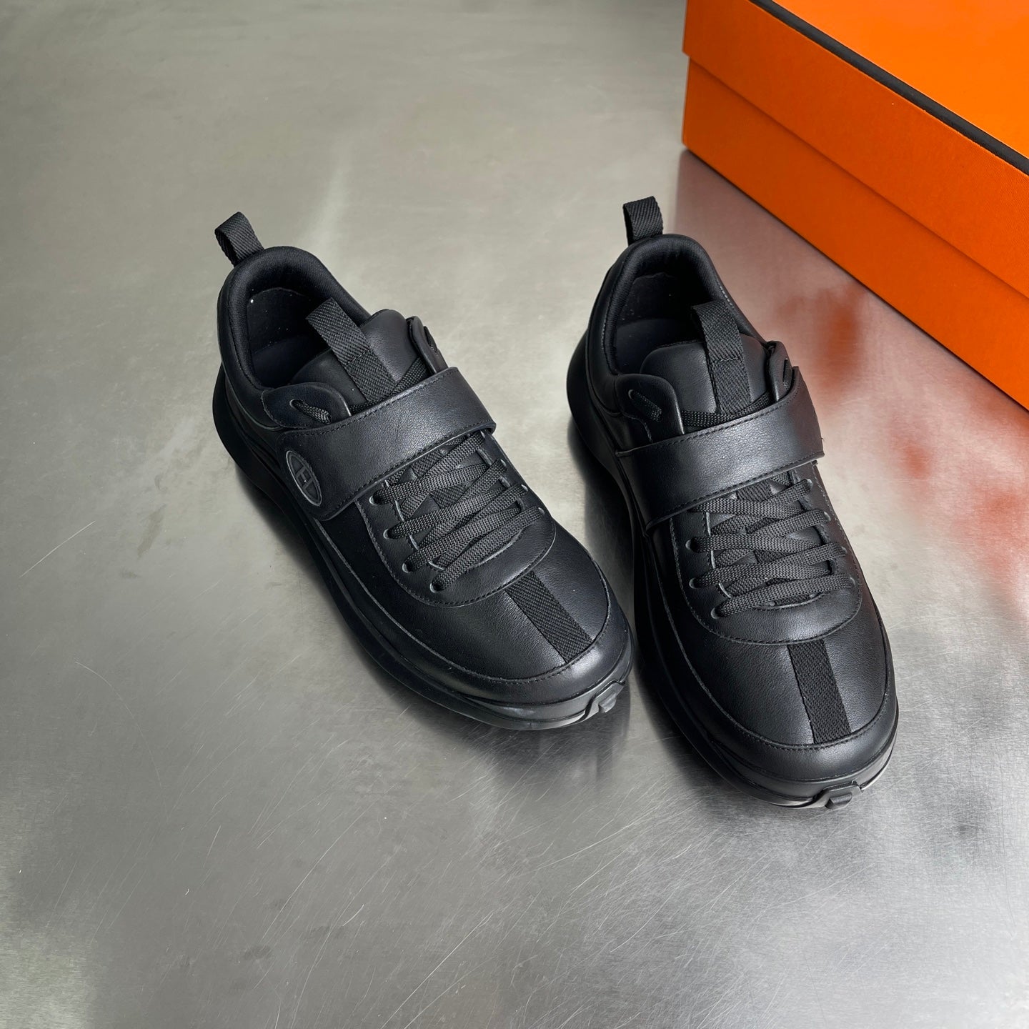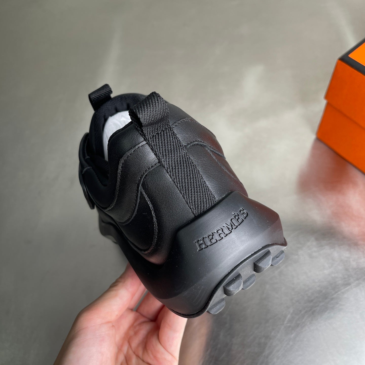 HM Men's Bouncing Sneaker Black White Calfskin Fabric 754131