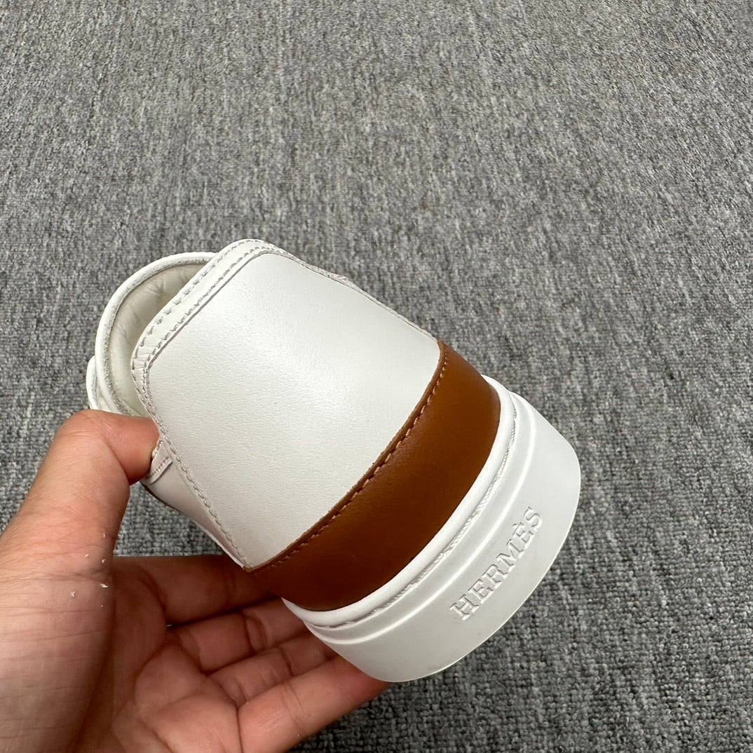 HM Men's Bouncing Sneaker White Brown Calfskin Fabric 754130