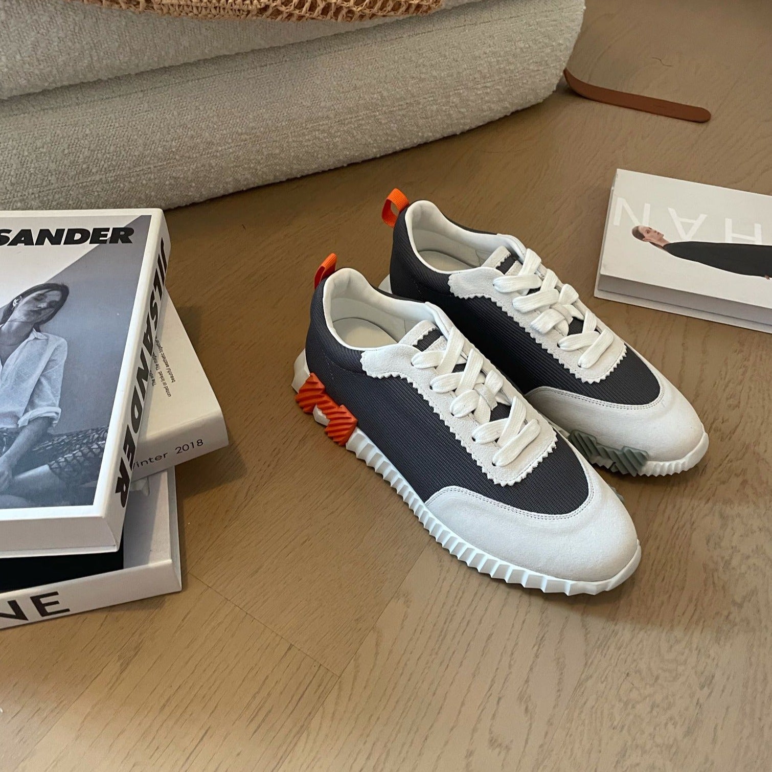 HM Bouncing 35 Sneakers White Canvas & Suede Goatskin H Black Orange