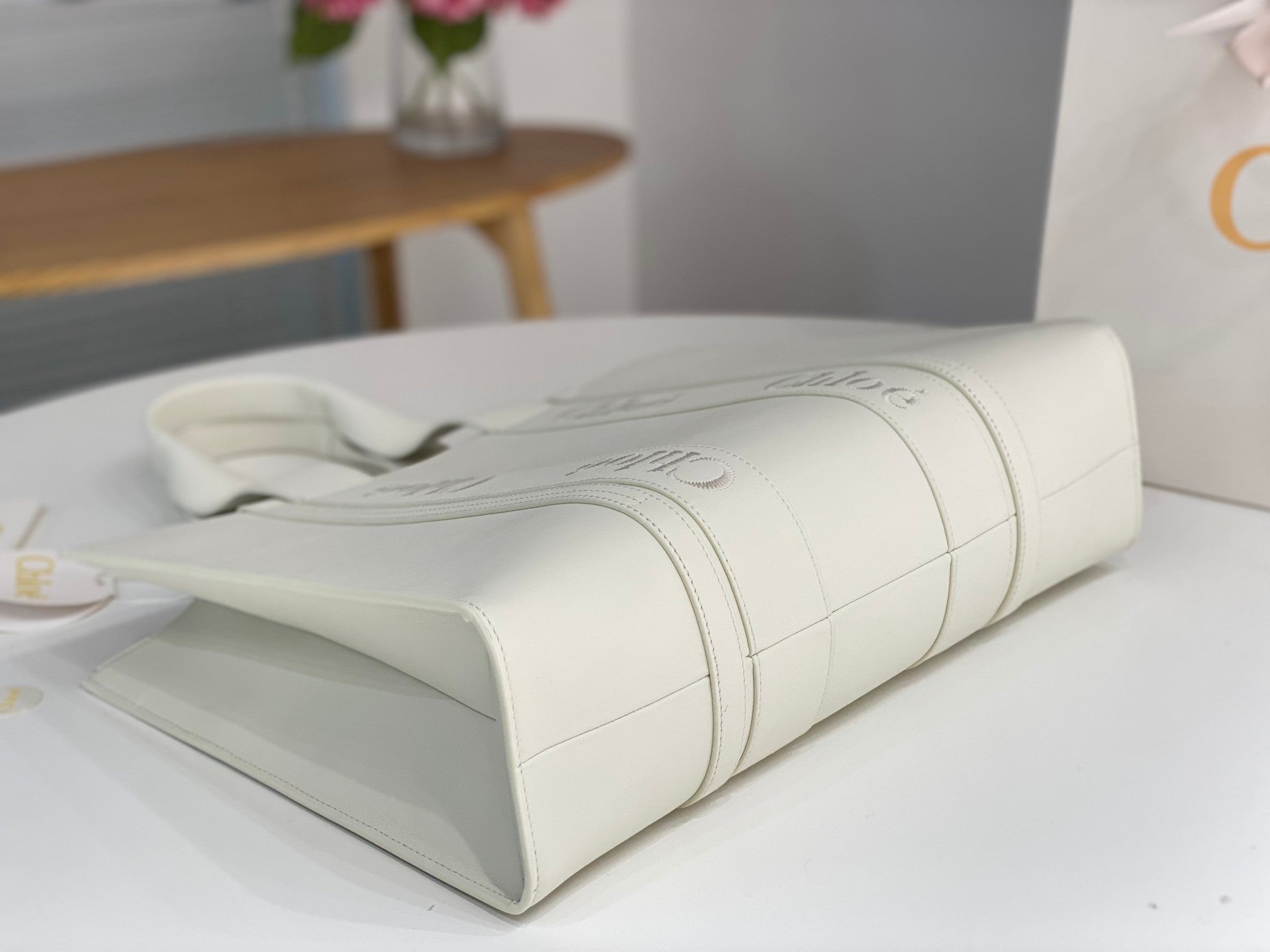 Chloé Woody tote bag white calfskin 531226