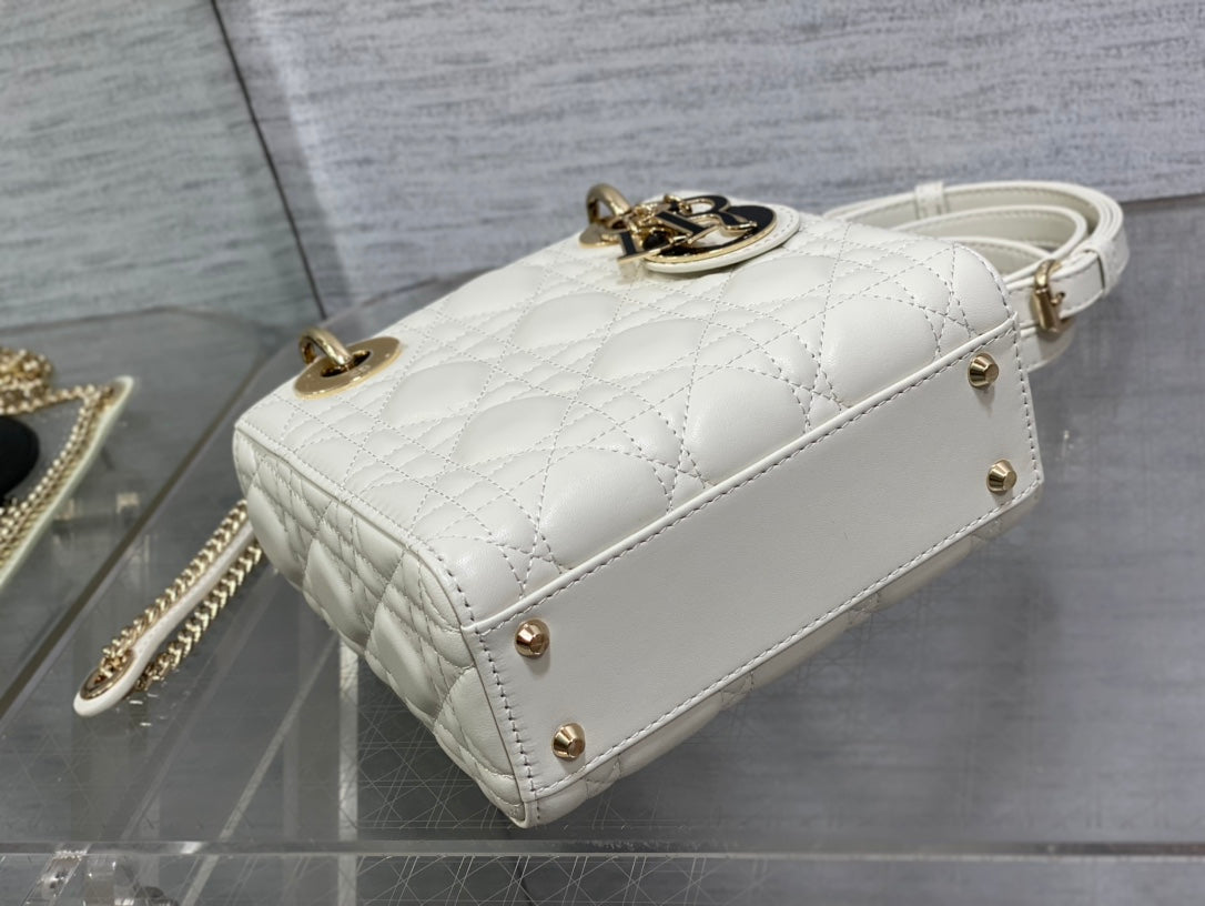 mini lady 17 white black lambskin