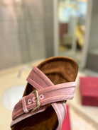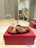 FUSSFRIEND CREPE PINK SILK VELVET SLIDE SANDALS