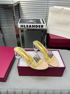 Heeled Sandals 6cm with Crystal Square Buckle Gold and Beige