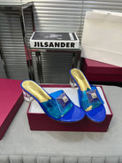 Heeled Sandals 6cm with Crystal Square Buckle Gold and Blue