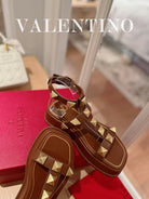 ROCKSTUD PLATFORM SANDALS IN BRONZE BROWN CALFSKIN