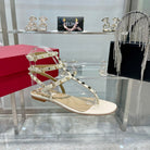 ROCKSTUD THONG SANDAL WITH STRAPS IN WHITE CALFSKIN